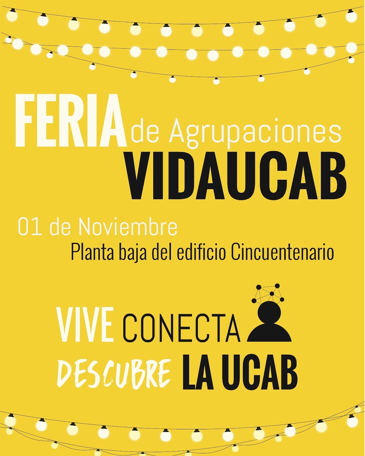 La Feria de Agrupaciones Vida UCAB se realizará mañana de 9am a 4pm. El evento, que se hará en la PB de Cincuentenario, contará con 65 agrupaciones que se darán a conocer ante el estudiantado. Distintos modelos y competencias, grupos de voluntariado, selecciones deportivas, agrupaciones culturales y juveniles, además de la representación estudiantil, les presentarán a los ucabistas las actividades que realizan y lo que ofrecen.