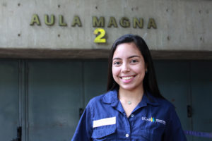 «Me gusta ayudar a los muchachos nuevos. Yo también fui nueva y orientar a otros para ubicarse dentro de la universidad, para que sepan dónde están los servicios o los lugares para estudiar o reunirse con amigos me parece una forma linda de contribuir con mi alma mater. A todos los muchachos les digo que estudien bastante, nunca dejen nada para última hora y aprovechen su estadía en la UCAB.’’