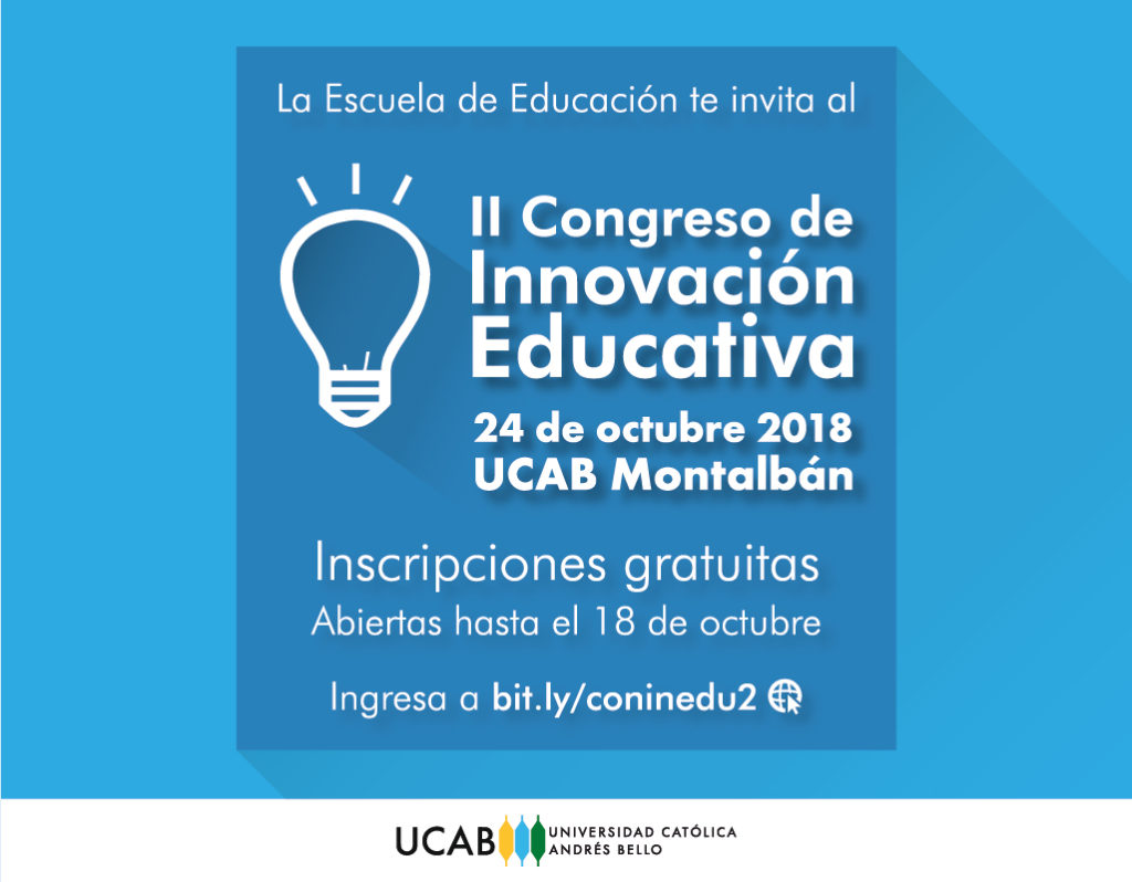 De la mano de la Escuela de Educación, el próximo 24 de octubre se efectuará en la UCAB, sede Montalbán, el II Congreso de Innovación Educativa, que congrega a docentes e investigadores en el área, para que compartan sus experiencias en el uso de técnicas novedosas en el aula. Esto, con el propósito de mostrar los avances que día a día se van efectuando para ofrecer una educación de calidad, a pesar de la crisis.