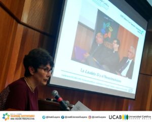 Otra de las disertaciones fue la de la profesora Beatriz Valdez, quien habló acerca del método empleado para establecer las conclusiones de Reto País, iniciativa de la Ucab para idear soluciones a los problemas de Venezuela, desde una visión de horizontes compartidos por todos los sectores de la sociedad nacional. Valdez destacó que “la Universidad está innovando a través de la prospectiva social y la minería de textos” aplicada en este proyecto.