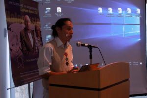 De manos de la representante de la organización, el profesor recibió el galardón y ofreció un discurso muy sentido en el que rindió tributo, con una vela, a la cultura judía y, en señal de respeto, utilizó una Kipá mientras leía una oración en hebreo.