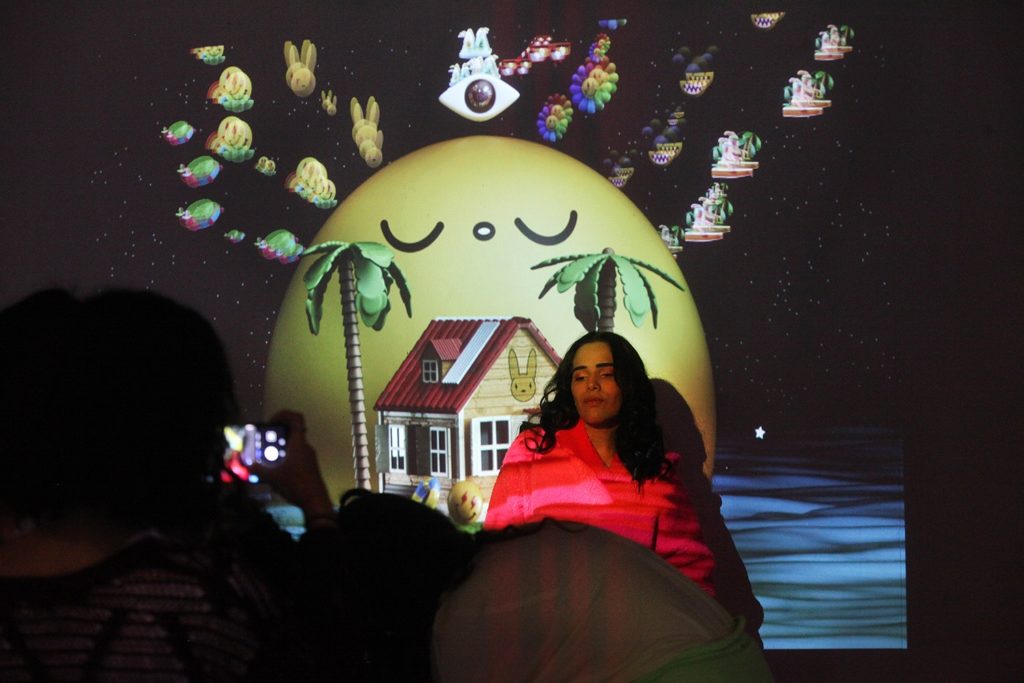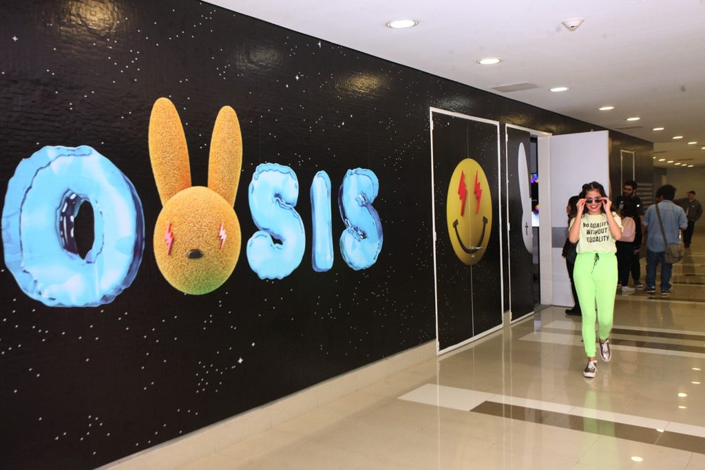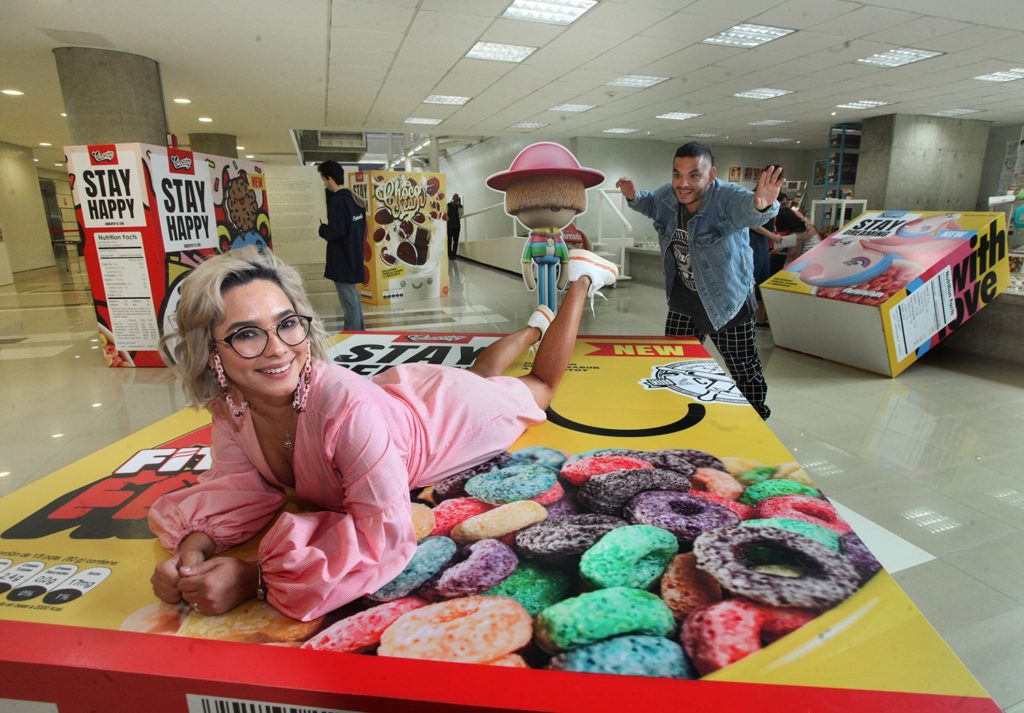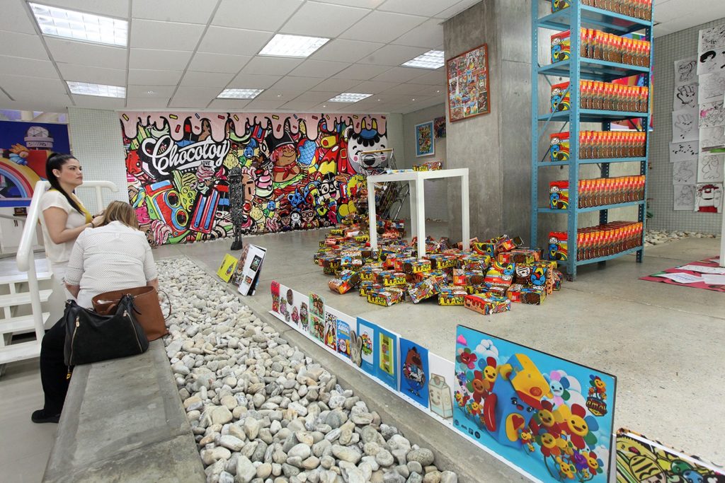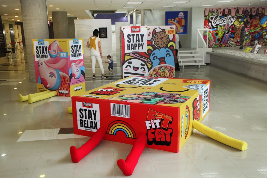 En la exhibición, el público puede toparse e interactuar con grandes cajas de cereales y dulces con mensajes que invitan a relajarse, réplicas de íconos emblemáticos de Venezuela como las arepas, personajes «tiernos» de historieta a los que provoca abrazar, además de una copia a gran tamaño del álbum «Oasis», del cantante de música urbana Bad Bunny, cuyo diseño gráfico fue creado por Chocotoy.