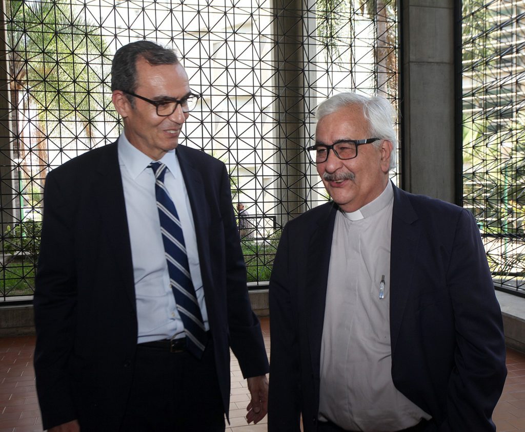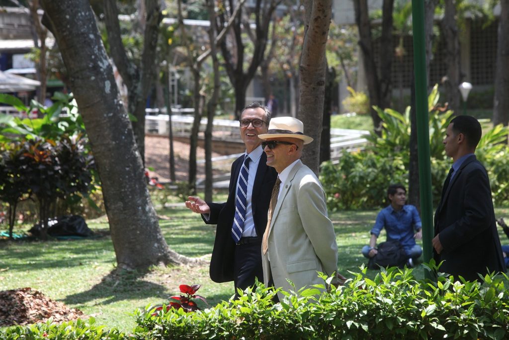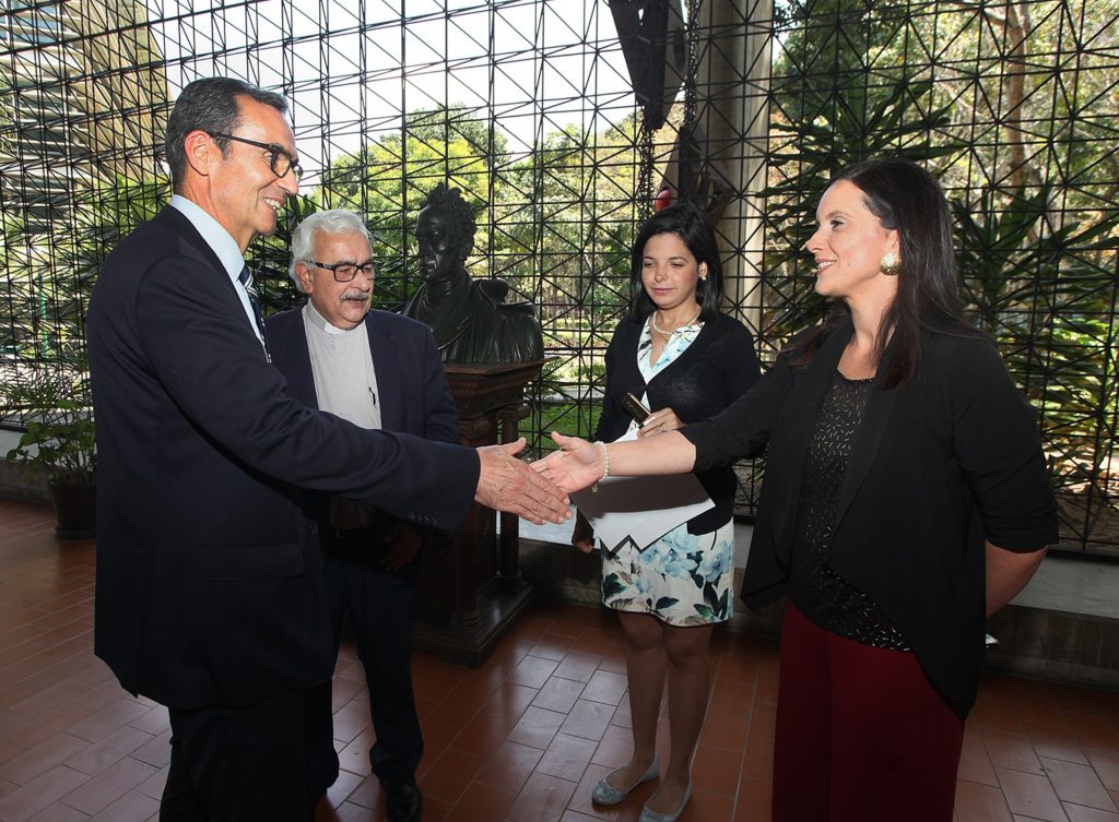 El diplomático sostuvo una reunión con el rector, Francisco José Virtuoso, en la que también estuvieron presentes Jaime Bello-León, director general de Comunicaciones, Mercadeo y Promoción; Daniella Salomón, directora de Promoción; Miguel Goncalves, director de Negocios UCAB, y Valeska Villarroel, directora del Centro para el Desarrollo de Lenguas Extranjeras (CDLE) de la universidad.