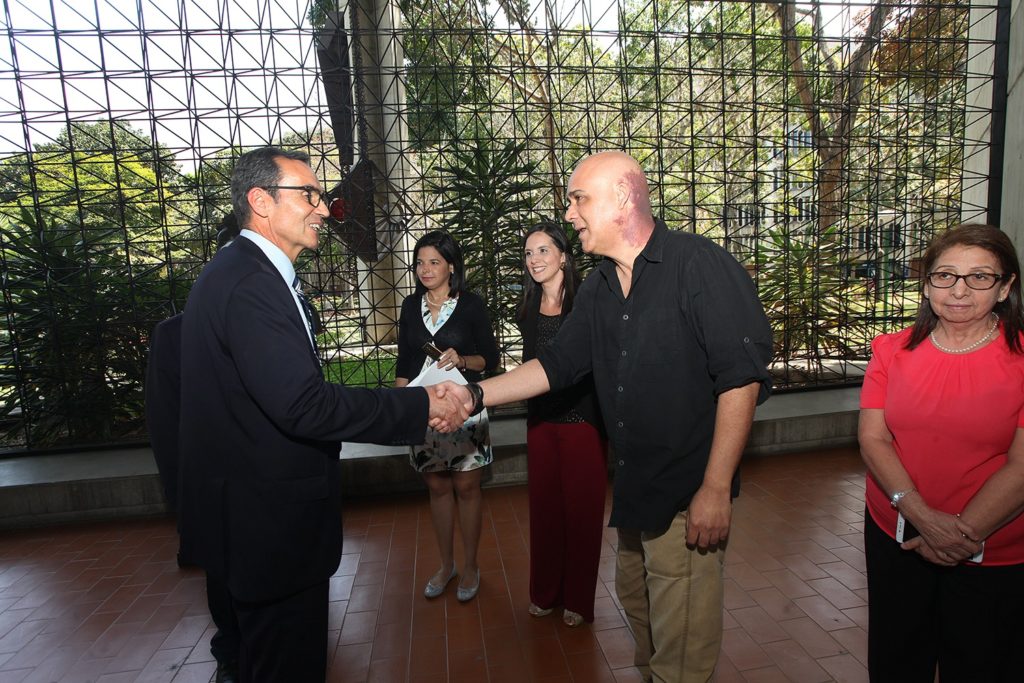 La visita de cortesía culminó con un recorrido del embajador Carlos Amaro por el Centro Cultural UCAB, en el que el diplomático pudo apreciar varias de las exhibiciones de arte dispuestas en ese recinto, de la mano de Humberto Valdivieso, curador del Centro Cultural.