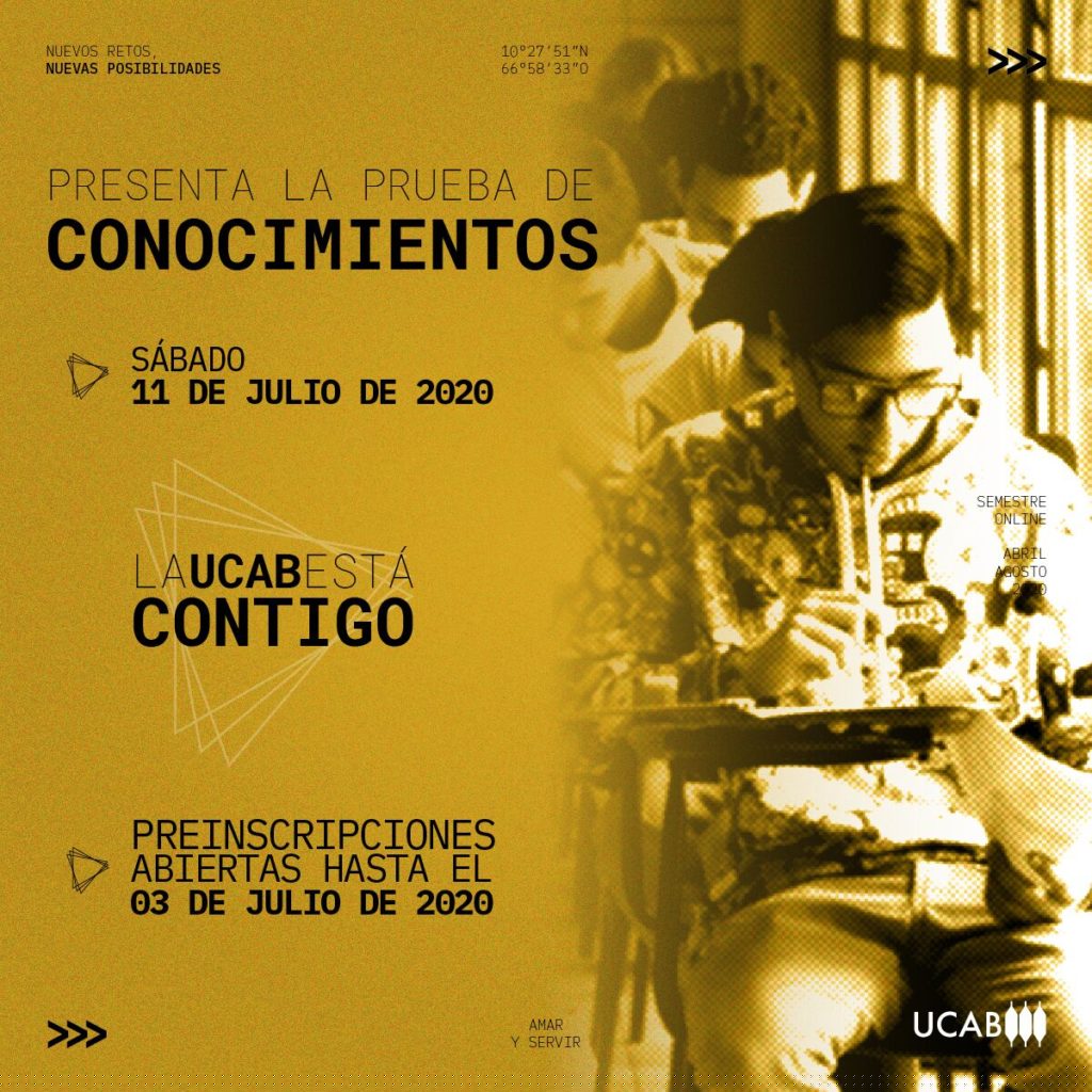 De cara al próximo semestre y con el objetivo de seguir brindando oportunidades de formación a los jóvenes venezolanos, la UCAB extendió el plazo de preinscripciones para todos aquellos bachilleres y futuros bachilleres que deseen comenzar sus estudios de pregrado, en las sedes de Caracas o Guayana, a partir de septiembre de 2020.