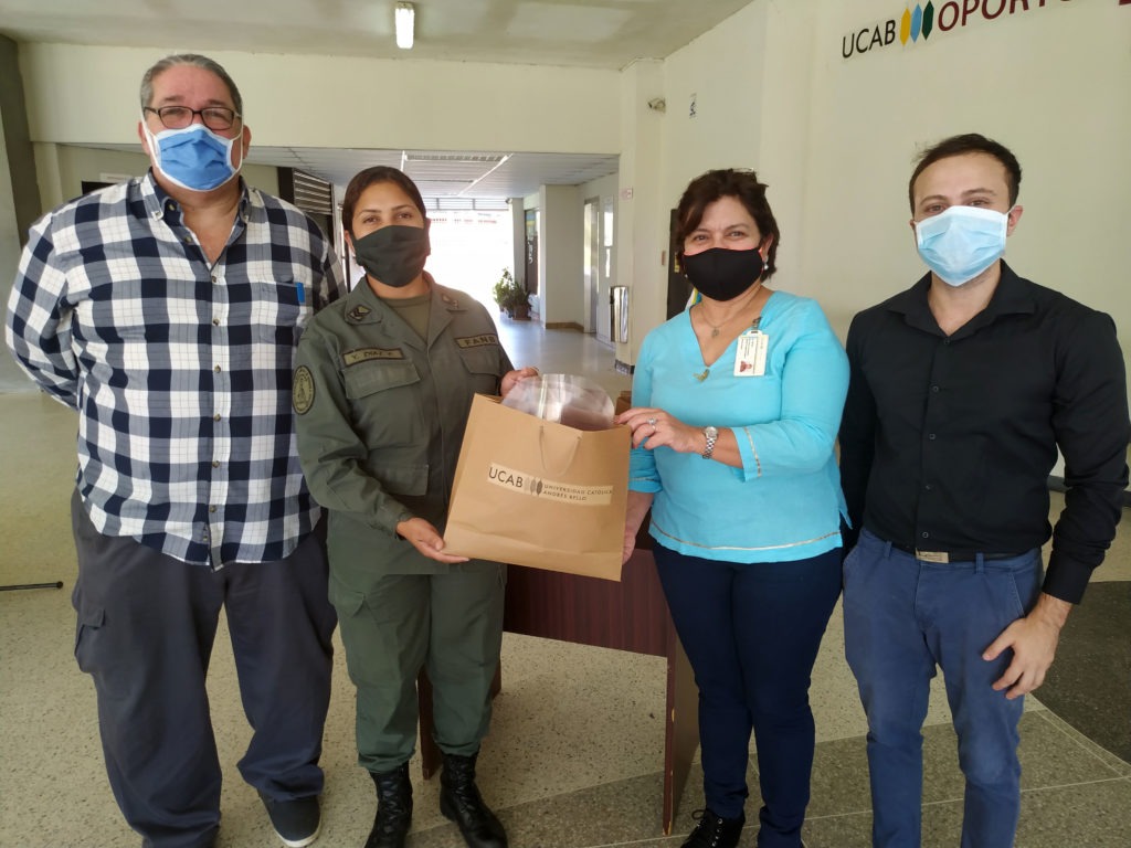 En un simbólico acto de entrega, al que asistieron representantes del IVSS Uyapar, del Hospital Militar “Dr. Manuel Siverio Castillo”, benefactores y ucabistas, el padre Arturo Peraza s.j., vicerrector de UCAB Guayana, destacó la importancia que tiene el personal médico al estar en la primera línea de batalla contra este virus que está afectando, directa o indirectamente, el bienestar de la población.