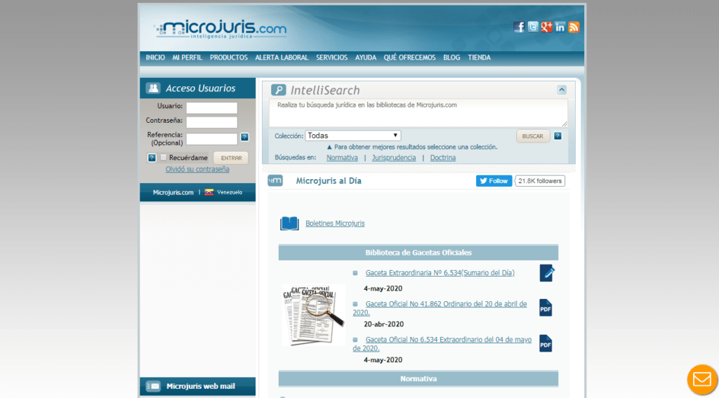 Portal especializado en el área jurídica con información sobre análisis jurisprudencial, doctrina, formulario, jurisprudencia, normativa y sentencia. También ofrece suscripción al boletín Microjuris que contiene:
