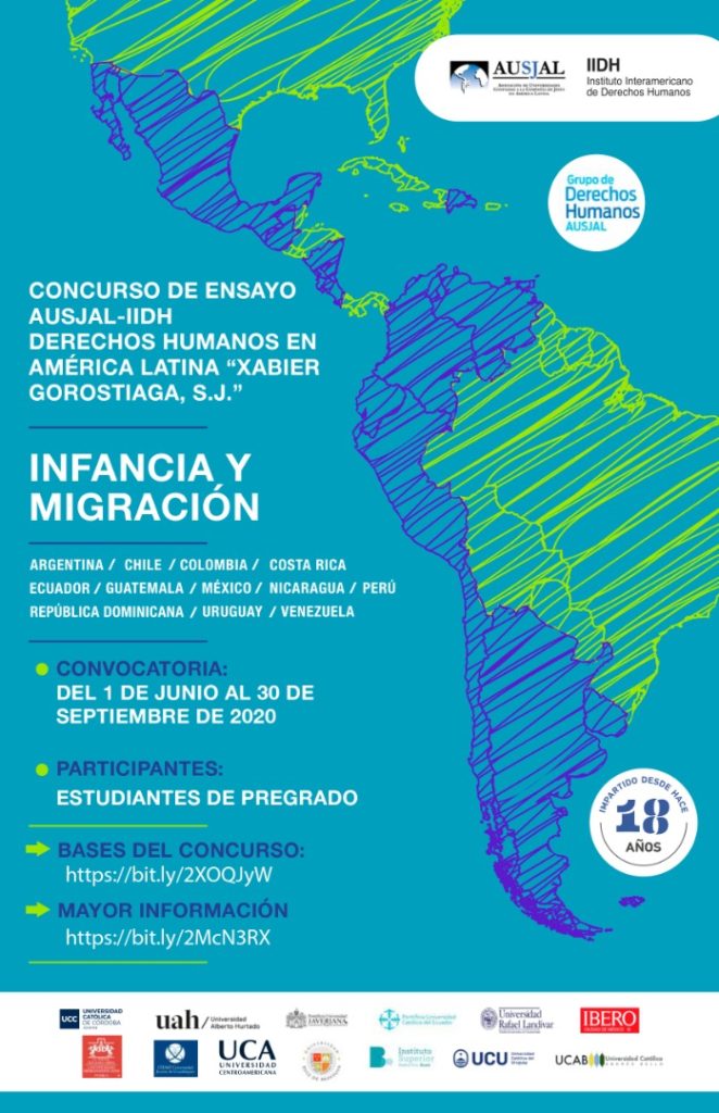 Con el objetivo de fomentar el estudio y el análisis de diversas temáticas sobre derechos humanos en América Latina, la Asociación de Universidades confiadas a la Compañía de Jesús en América Latina (AUSJAL), en alianza con el Instituto Interamericano de Derechos Humanos (IIDH), mantiene abierta, desde el 1 de junio, la convocatoria para el «Concurso de Ensayos AUSJAL-IIDH sobre Derechos Humanos en América Latina Xabier Gorostiaga s.j.”.