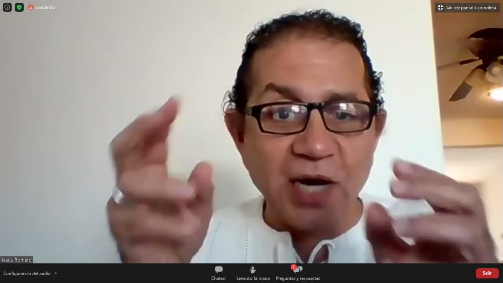La infectóloga compartió reflexiones con los especialistas Eduardo Perozo, bioquímico y biofísico molecular del Instituto de Dinámica Biofísica de la Universidad de Chicago, que investiga el coronavirus COVID-19; y el médico Jesús Romero, docente de la UCV y experto en fisiología molecular, actualmente activo en la Universidad de Loyola, también con sede en Chicago.