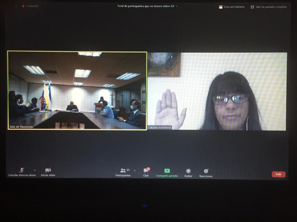 El encuentro se desarrolló en un formato mixto, pues las autoridades universitarias y alguno de los designados estuvieron presentes en el salón de sesiones, en el campus de Montalbán, mientras que otros prestaron juramento a través de la pantalla, gracias a una videoconferencia por la plataforma Zoom.