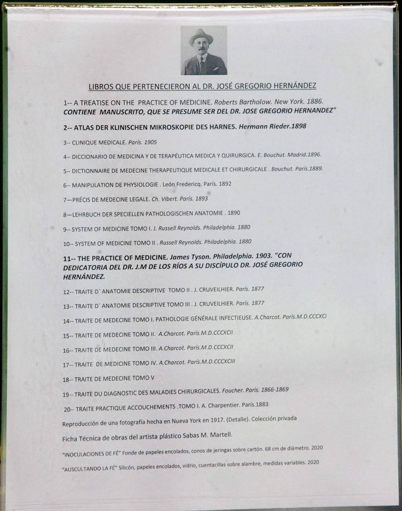 Poco más de 30 años después de su trágico fallecimiento en 1919, su sobrino, Ernesto Hernández Briceño, donó a la UCAB –entonces ubicada en el centro de Caracas, en la esquina Jesuitas– esta parte de su biblioteca, que ha permanecido en los fondos de la universidad y cuyos ejemplares fueron restaurados, explicó el padre Francisco Javier Duplá s.j., biógrafo del venerable y quien ha revisado los volúmenes como parte de su trabajo de investigación sobre la trayectoria del «médico de los pobres».
