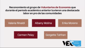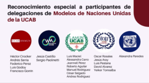 También fueron homenajeados los estudiantes de Economía que formaron parte, durante el año pasado y el primer periodo del años lectivo en curso, de las agrupaciones con participación a nivel nacional e internacional: HNMUN 2019, WORLDMUN 2019, LAMUN 2019, MOIT 2019, NMUN 2019, MOPEP, la Sociedad de Debate y Gabinete UCAB, Voluntariado de Economía, Centro de Estudiantes y Consejo de Escuela.