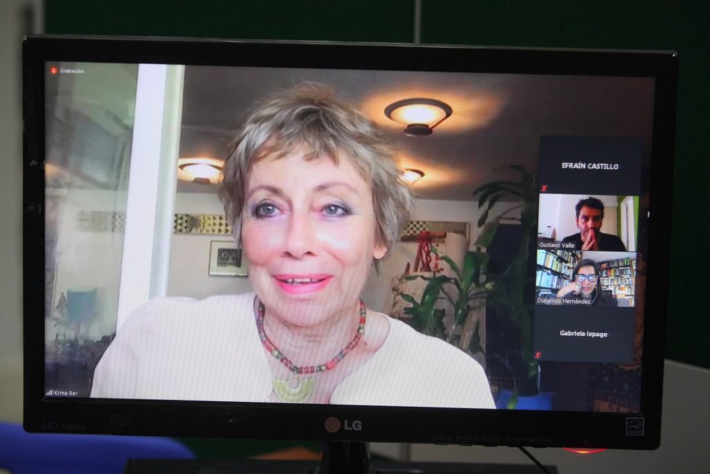 La más reciente galardonada del Premio Nacional Transgenérico, Krina Ber, comentó en la reunión que su obra Ficciones asesinas, premiada en 2019, nació de varias ideas apuntadas en su diario personal.
