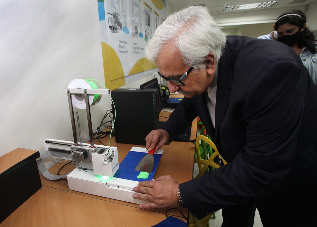 La última parada del recorrido se hizo en el recientemente construido Laboratorio de Prototipismo e Impresión 3D, que también está localizado en el segundo piso del edificio de Laboratorios y es gestionado por la Escuela de Ingeniería Industrial.