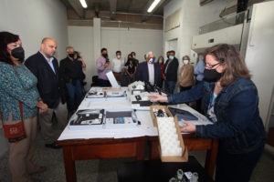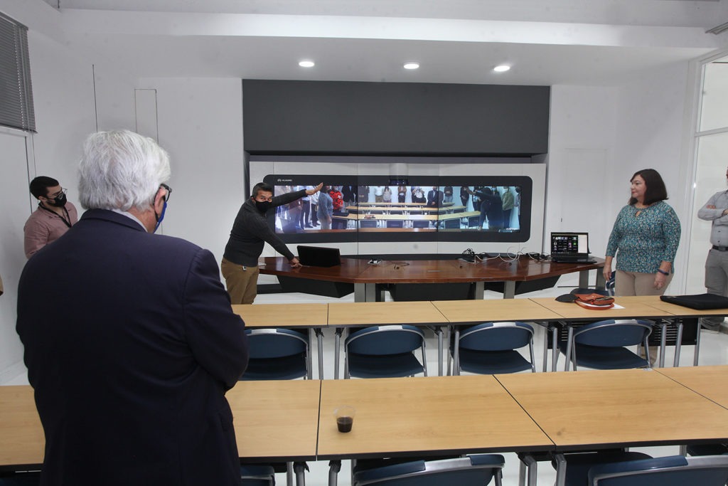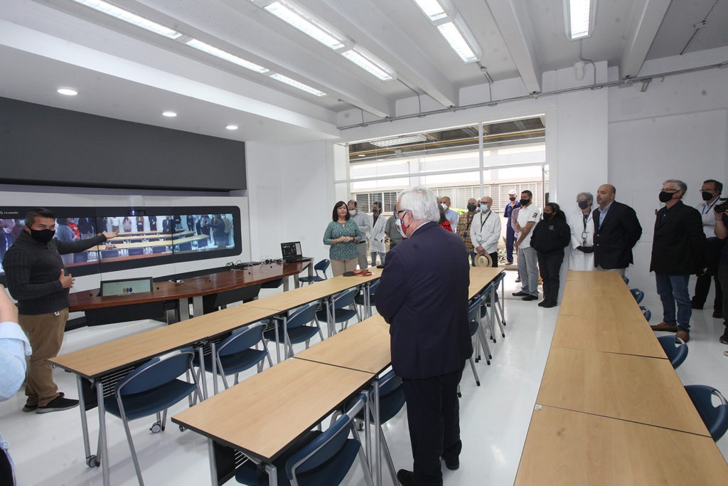 Respetando las normas de distanciamiento y bioseguridad, los asistentes visitaron la nueva Sala de Telepresencia, potenciada con la tecnología de la empresa Huawei y ubicada en la PB del edificio de Laboratorios. La misma está diseñada para sostener videoconferencias o clases magistrales con ponentes ubicados en cualquier parte del mundo, gracias a tres monitores de 55 pulgadas y una cámara panorámica de alta resolución, equipos que son controlados remotamente desde dos paneles emplazados dentro de la propia sala.