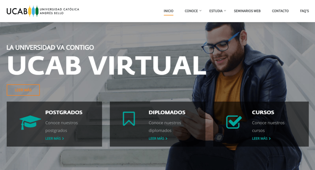 Las clases se dictan a través de la plataforma educativa de la universidad (ucabvirtual.ucab.edu.ve), donde los estudiantes pueden interactuar con sus compañeros y profesores, mientras acceden a los recursos académicos actualizados y desarrollados bajo estándares internacionales de calidad.