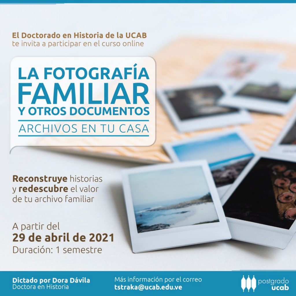 Más allá de la nostalgia, los archivos familiares pueden ser un elemento clave para reconstruir el pasado personal y grupal de varias generaciones. Los retratos o imágenes que recogen episodios, lugares y tiempos específicos vividos por padres, hermanos, tíos, abuelos o primos son una herramienta invaluable para lograrlo. Bajo esa premisa, la Universidad Católica Andrés Bello dictará un curso en línea, dirigido a historiadores y público general interesado en el estudio de la fotografía -y en particular del retrato familiar- como testigo excepcional de la historia.