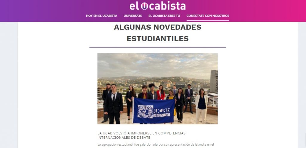 - «La UCAB en los medios», en la que se pueden revisar contenidos noticiosos que la prensa nacional o internacional producen acerca de la labor de la universidad.