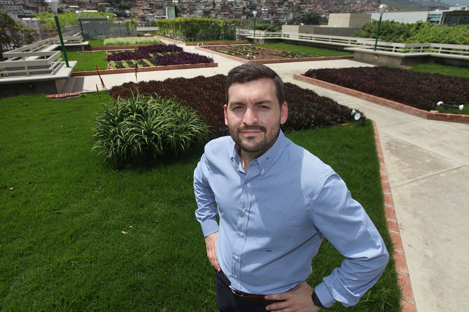 En 2013 y para graduarse de ingenieros civiles, Rubén Acuña Perera y Carlos Estévez presentaron como proyecto el estudio de factibilidad de instalación de una terraza-jardín, con fines ecológicos, en el edificio de Postgrado. Casi una década después, los jóvenes celebran que la universidad haya concretado su idea y apuestan por la multiplicación de espacios como este en el campus y en Caracas