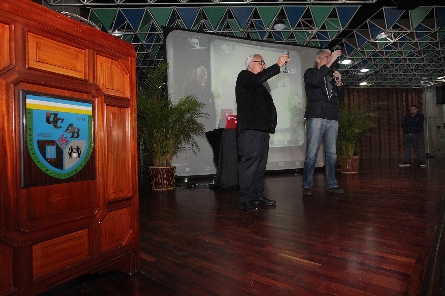 Antes de finalizar, desde el Aula Magna de la UCAB, el rector y el director de Egresados UCAB levantaron sus copas para brindar por la promoción saliente y los alumnos disfrutaron de música en vivo a cargo del Dj Randolph.