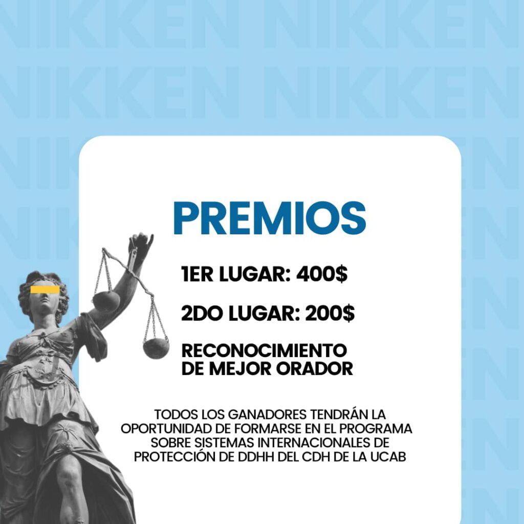 Cursantes de Derecho o Relaciones Internacionales de cualquier universidad tienen hasta el 30 de octubre para inscribirse en esta competencia de debate organizada por la UCAB. Los ganadores recibirán un premio en efectivo y una beca para formarse en el programa sobre el sistema de protección de DDHH que dicta esta casa de estudios