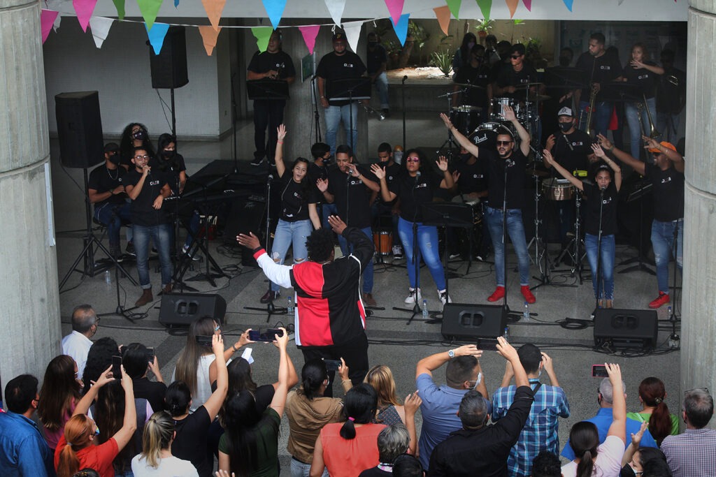 «Han sido 68 años de compromiso con la comunidad, apostando siempre a la formación de nuestros estudiantes y, por supuesto, contribuyendo al desarrollo de nuestro país. Lo primero que nos gustaría celebrar es que nos estamos reencontrando en nuestro campus, para celebrar un día tan especial para todos los ucabistas; no por Zoom y no por el canal de YouTube, sino de cerca«, apuntó Starlys Manrique, coordinadora de la Unidad de Administración Docente, al inaugurar la celebración musical