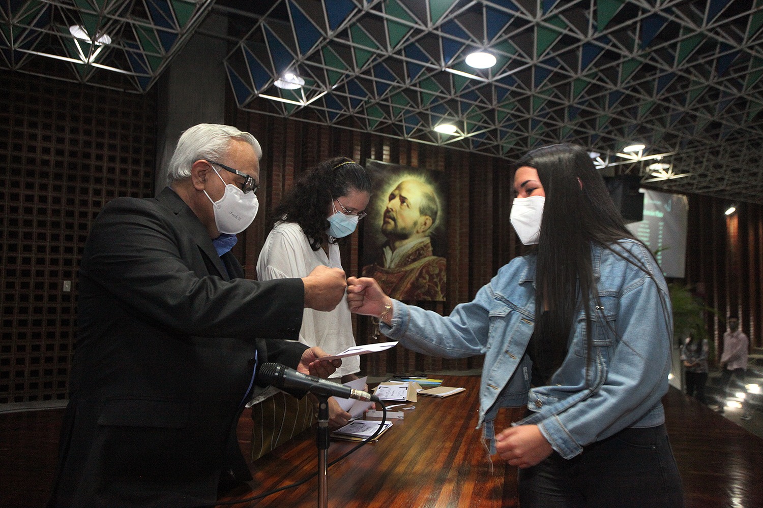 El evento -que se llevó a cabo con todas las medidas de bioseguridad- fue encabezado por Francisco José Virtuoso, rector de la UCAB; Néstor Luis Luengo, vicerrector de Identidad, Desarrollo Estudiantil y Extensión Social (IDEES); y Adle Hernández, directora general de Extensión Social y directora de Proyección y Relaciones Comunitarias.