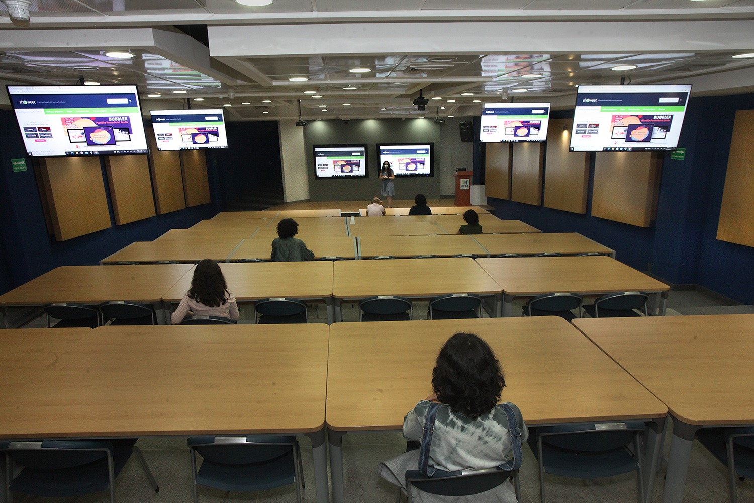 Gracias al esfuerzo de la Dirección de Tecnología e Información y el Centro de Estudios en Línea, la universidad instaló varios salones, con equipos de última generación, en los que podrán efectuarse encuentros académicos que combinen presencialidad física y participación virtual de los alumnos