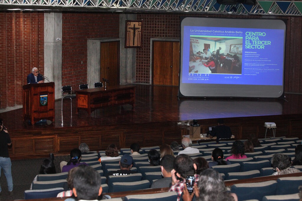 En un acto realizado en el Aula Magna de esta casa de estudios, con la presencia de poco más de 100 dirigentes sociales y comunitarios de más de una decena de estados del país, el vicerrector administrativo de la UCAB, Gustavo García, señaló que esta iniciativa viene gestándose desde hace un año, cuenta con el acompañamiento técnico del Banco Interamericano de Desarrollo (BID) y responde a la necesidad de “crear espacios y opciones que le permitan a la universidad hacer algo más por el fortalecimiento del tercer sector en Venezuela”.