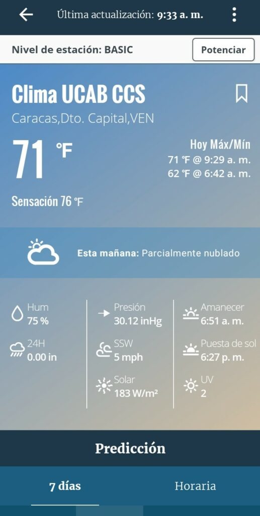 El geógrafo dio a conocer que la comunidad ucabista y el público general pueden conocer los datos en tiempo real, a través de la aplicación WeatherLink, que actualiza el reporte cada 15 minutos.