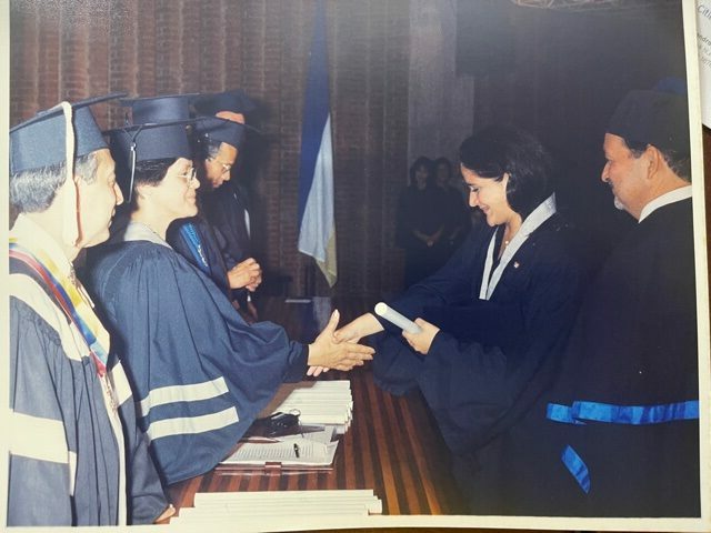 En la UCAB desea dar clases en alguna oportunidad; se pone a la orden, deseosa de aportar algo a la generación que se forma hoy en el campus; recomienda ciegamente la universidad, por su “esquema increíble de educación holística y de valores, así como por el network que proporciona a cada profesional”.