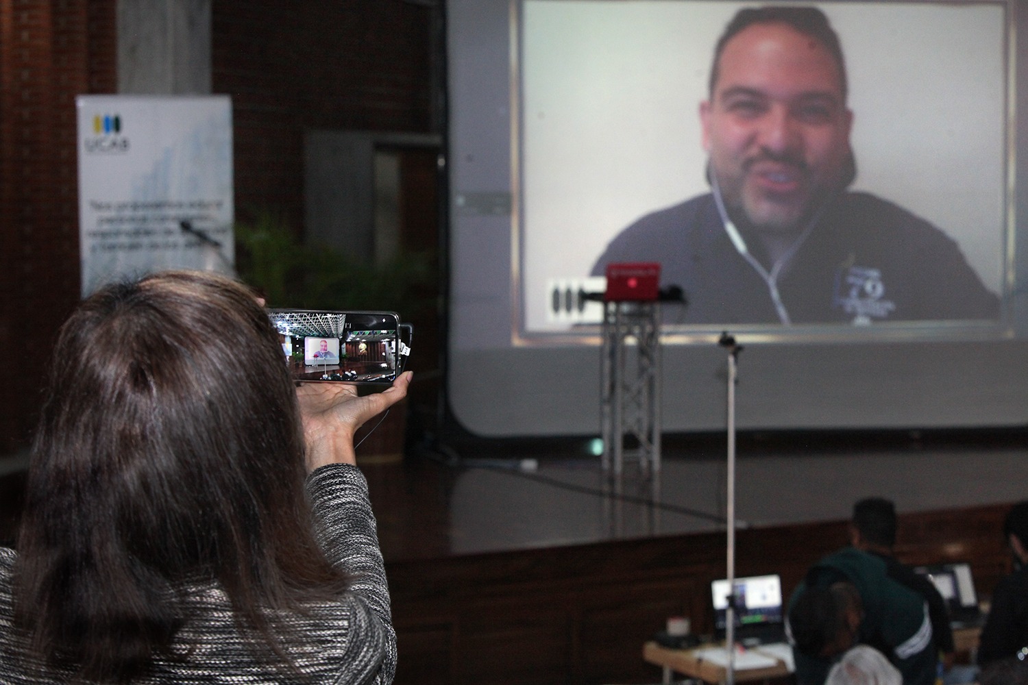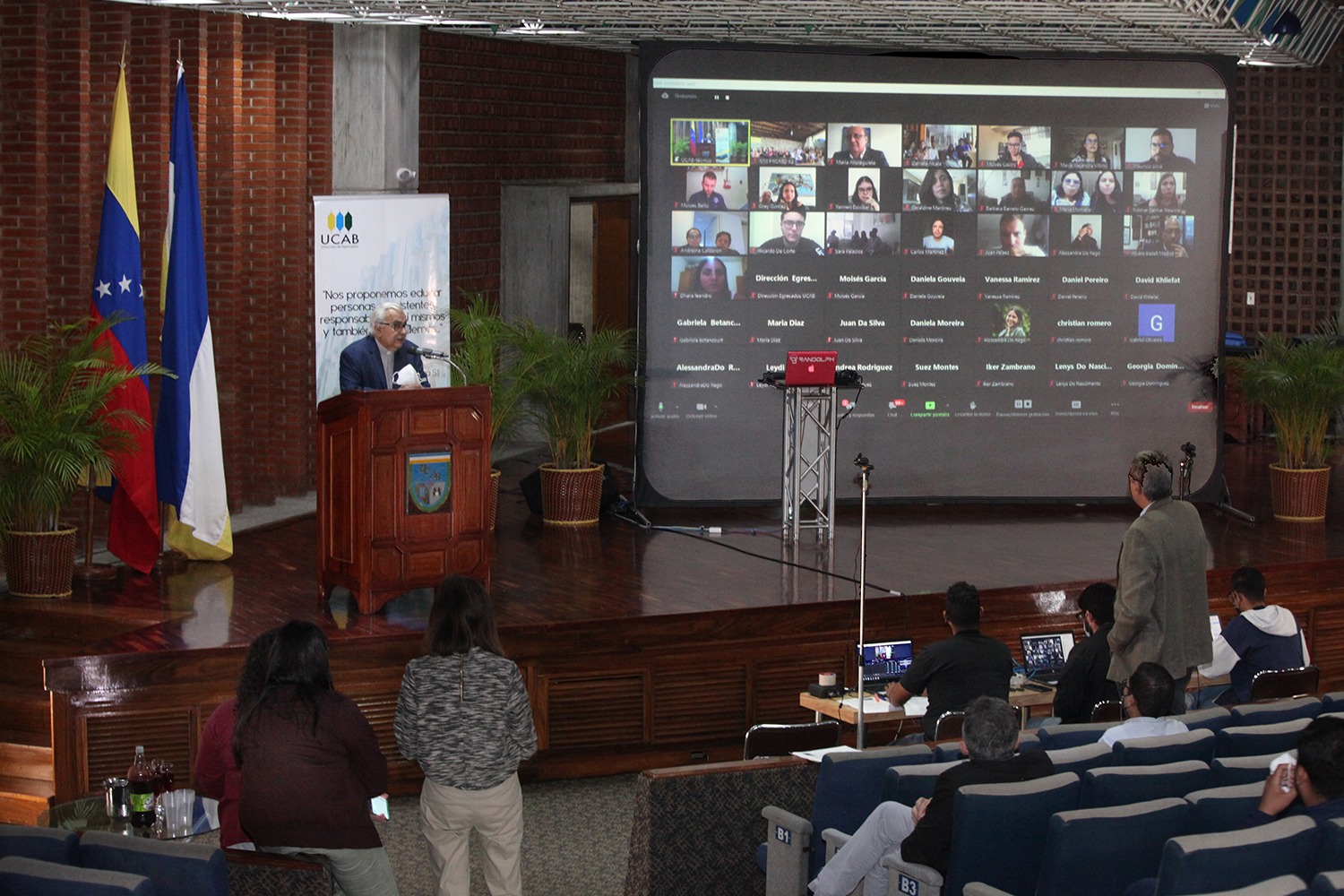 Un video con el Himno de la UCAB dio la bienvenida a la ceremonia en la que los jóvenes fueron acompañados por el rector de la universidad, Francisco Virtuoso; el director de Egresados UCAB, Luis Ernesto Blanco, además de los padrinos de la promoción y otros profesores.