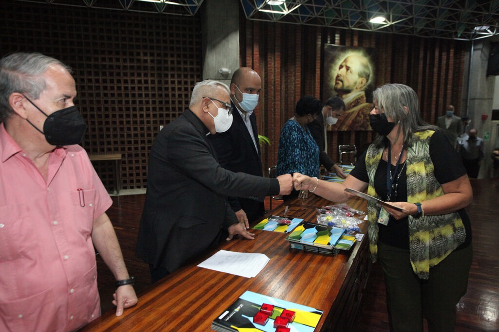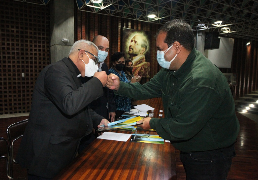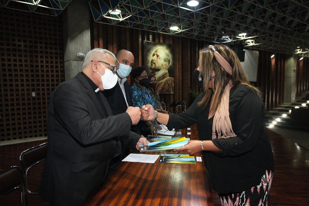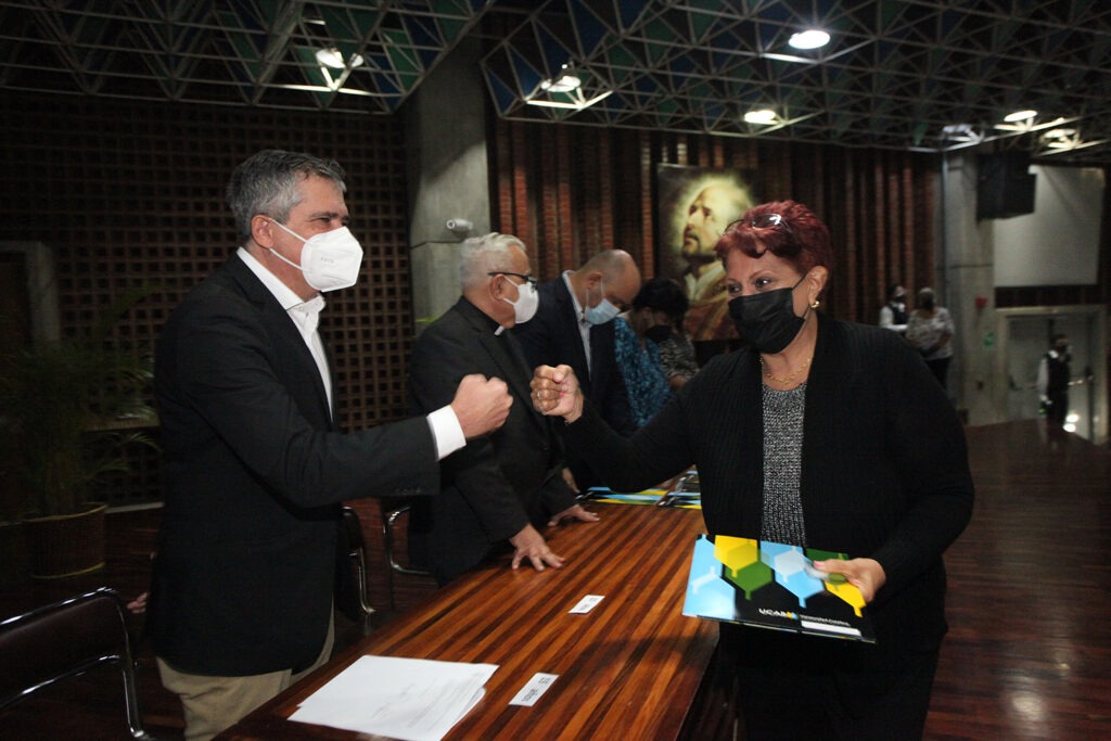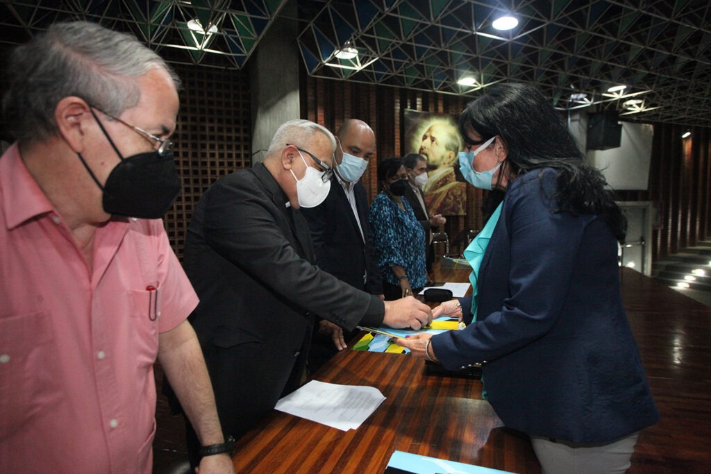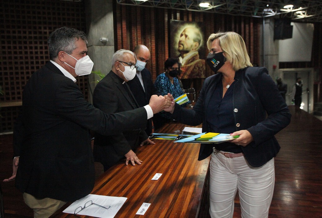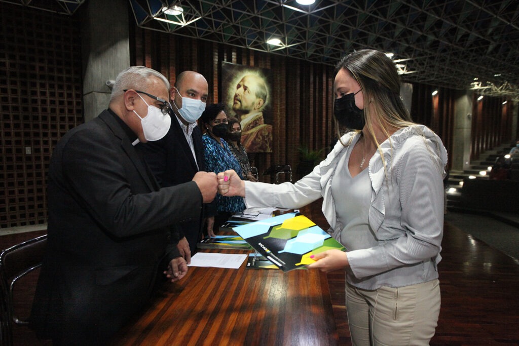 Los acompañaron la directora general de Recursos Humanos, Elizabeth Formica; el secretario de Investigación y Transferencia, José Luis Da Silva, y la presidenta de la Asociación de Empleados y Obreros (AEYOUCAB), Lidia Lovera.