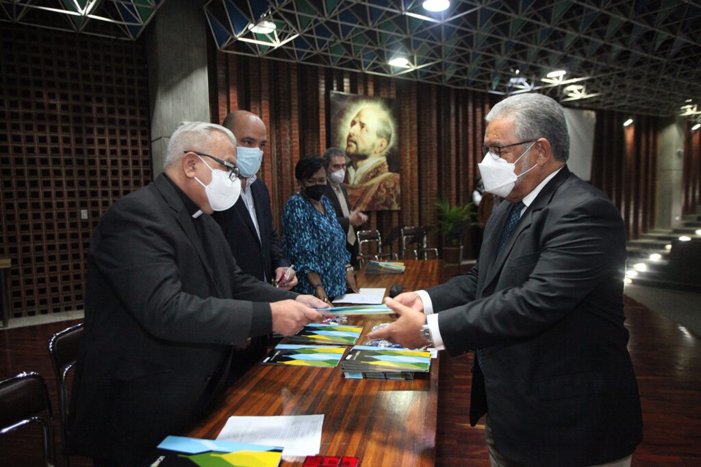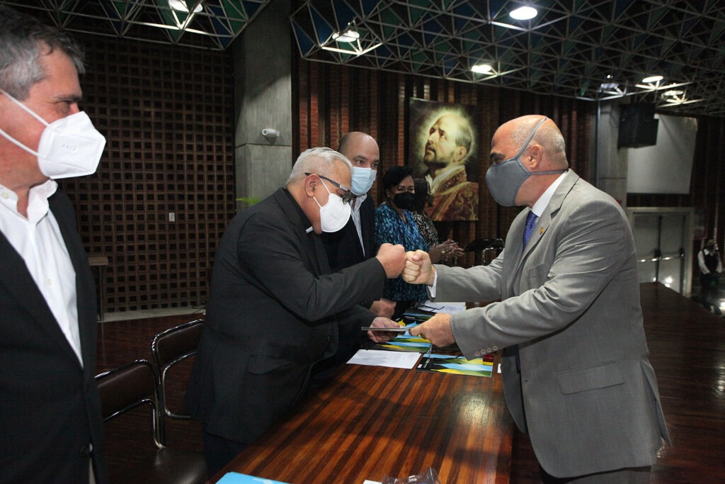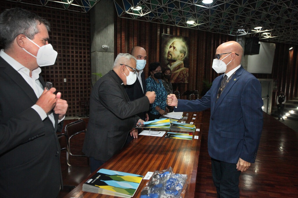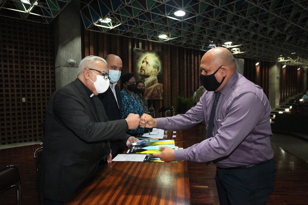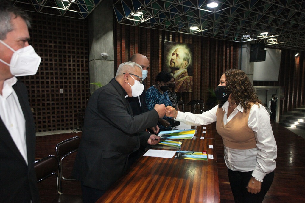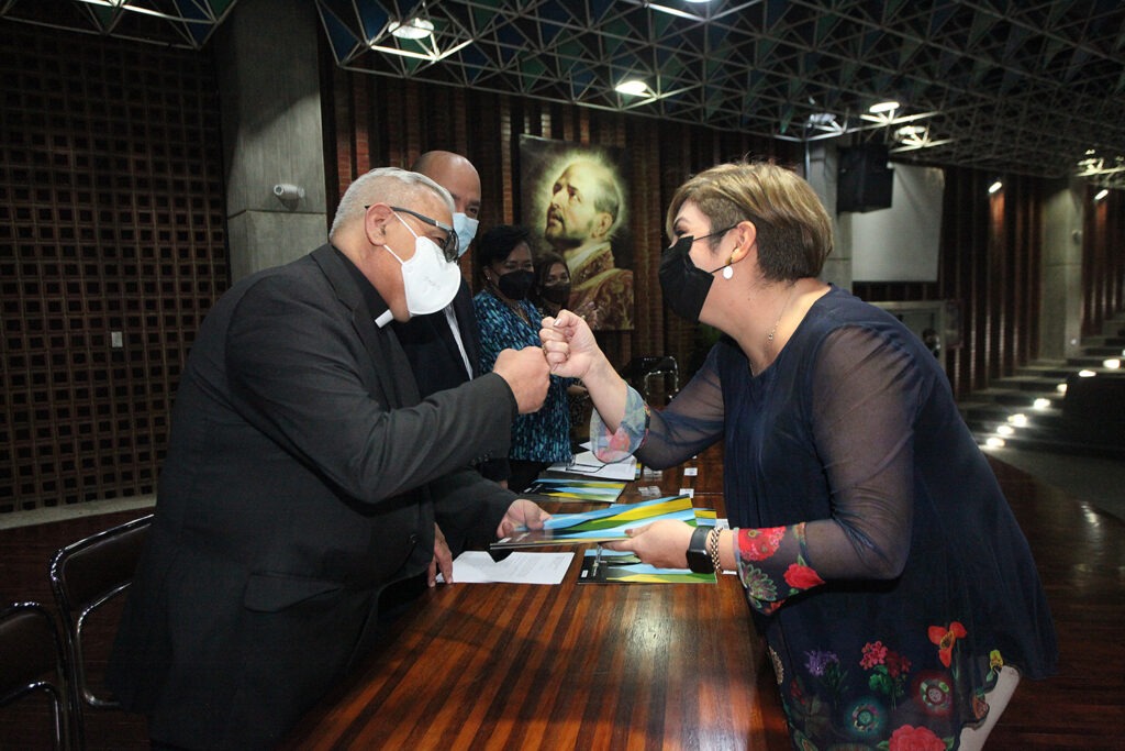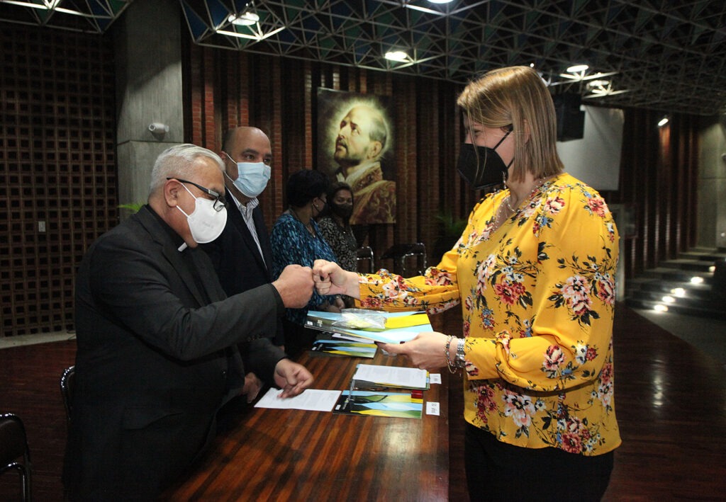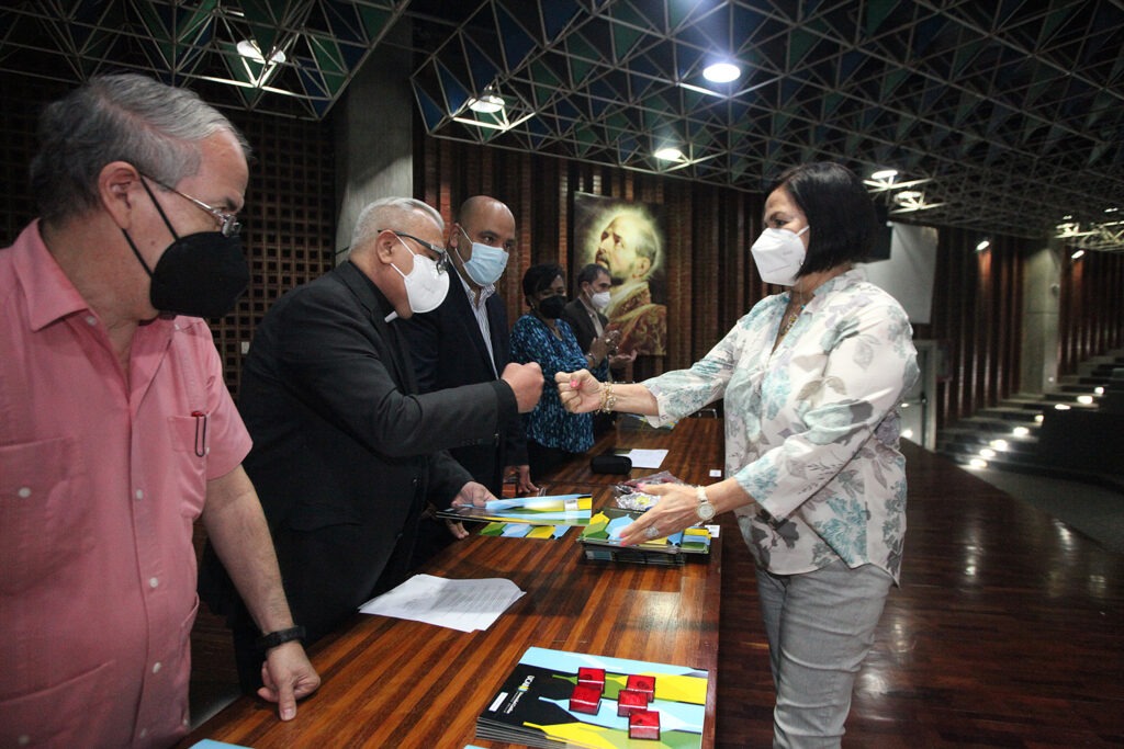 Los acompañaron la directora general de Recursos Humanos, Elizabeth Formica; el secretario de Investigación y Transferencia, José Luis Da Silva, y la presidenta de la Asociación de Empleados y Obreros (AEYOUCAB), Lidia Lovera.