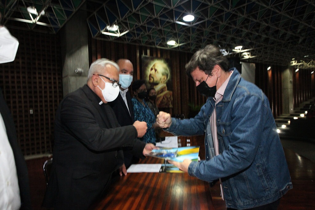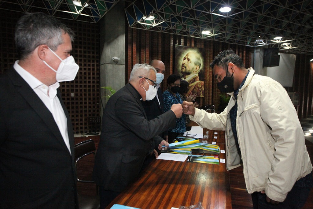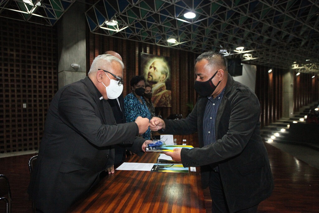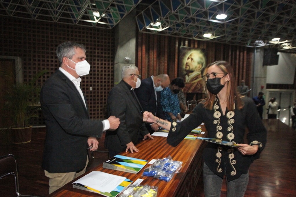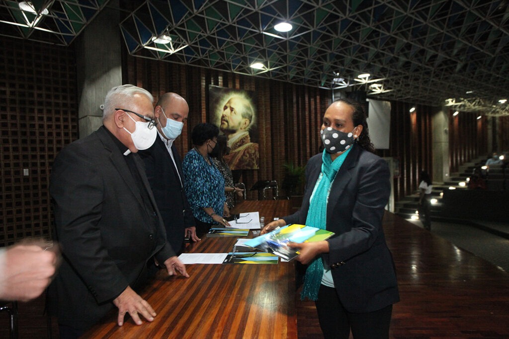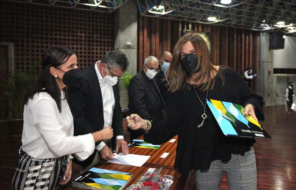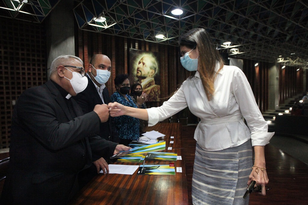 Los acompañaron la directora general de Recursos Humanos, Elizabeth Formica; el secretario de Investigación y Transferencia, José Luis Da Silva, y la presidenta de la Asociación de Empleados y Obreros (AEYOUCAB), Lidia Lovera.