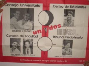 Un punto clave en sus años de político estudiantil en la educación superior fue, según cuenta, durante las campañas destinadas a llevar algún representante de Derecho al Consejo Universitario. La estrategia, asegura, consistía en establecer alianzas con otras escuelas grandes; en los años ochenta, estas eran Administración de Empresas y Economía.