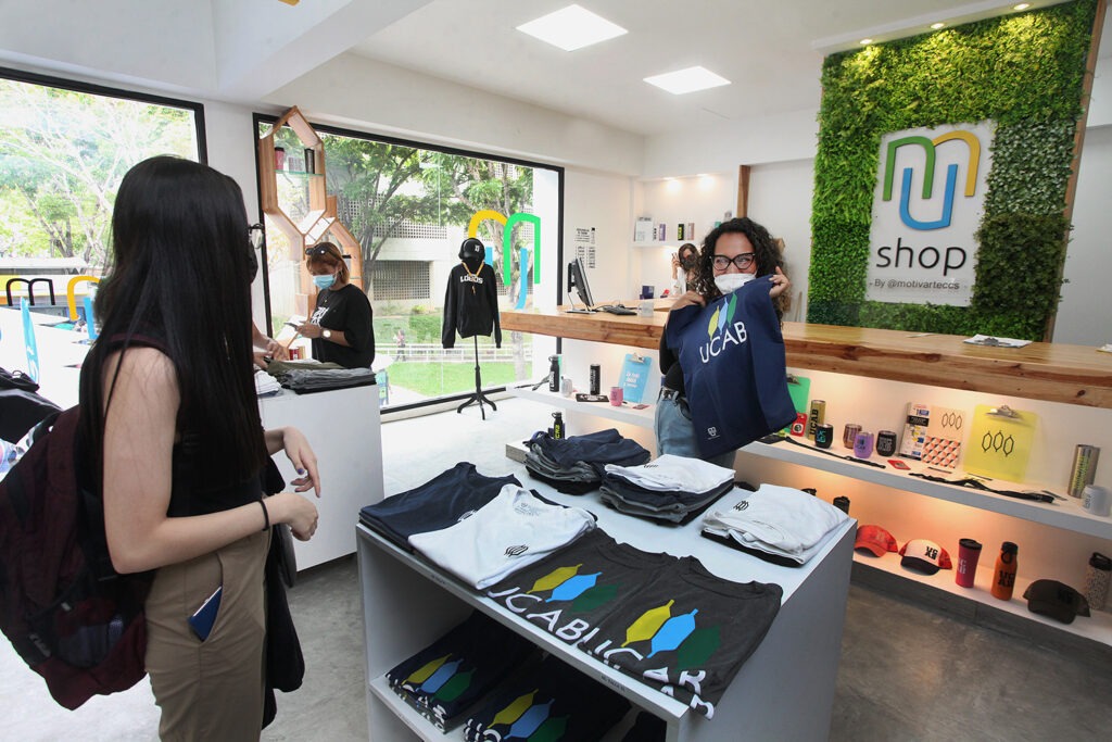El área de la Feria fue epicentro de la diversión extra académica. Mientras un DJ ambientaba el lugar, se reinauguró la tienda oficial de la universidad, Mundo UCAB Shop, a la cual muchos se acercaron para curiosear y adquirir desde suéteres a gorras o tazas, todos con los logos que refuerzan el sentido de pertenencia e identidad ucabistas.