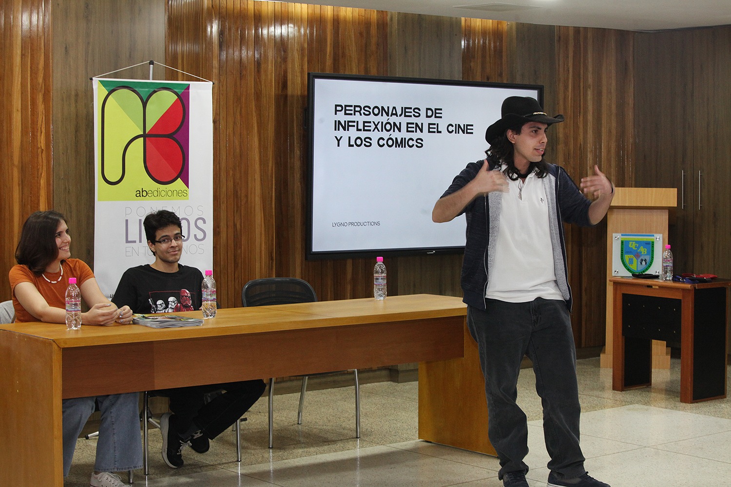 A las 3:00 p.m. el equipo de Lygno Productions se reunió con un grupo de estudiantes para conversar sobre “Personajes de inflexión en el cine y los cómics”. Durante la charla, también presentaron una revista que recoge los primeros números del cómic Santa Sofía (escrito por Moris Rauseo e ilustrado por Andrea Hernández) y otras historias de ilustradores nacionales que se han desarrollado bajo las temáticas Especial de Halloween 2021 y Especial San Valentín 2022.