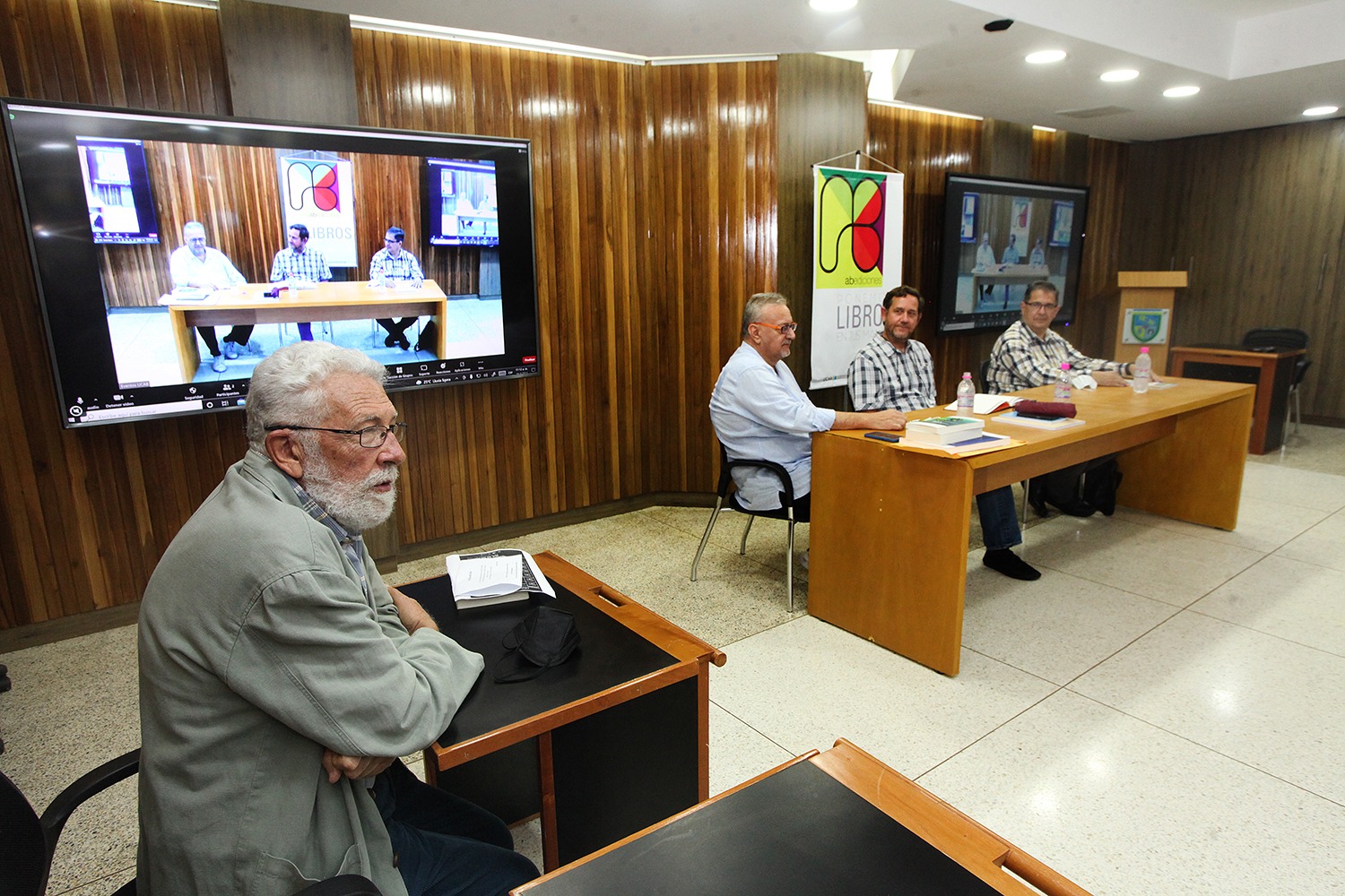 A las 11:00 a.m., en la sala Loreto del Rectorado, Sergio Dabhar, Miguel Pérez, José Ramón Gutiérrez y Mariela Mendoza condujeron el foro “El libro. Su producción y venta”. Durante el encuentro discutieron sobre el estado y las expectativas futuras del libro impreso en Venezuela.