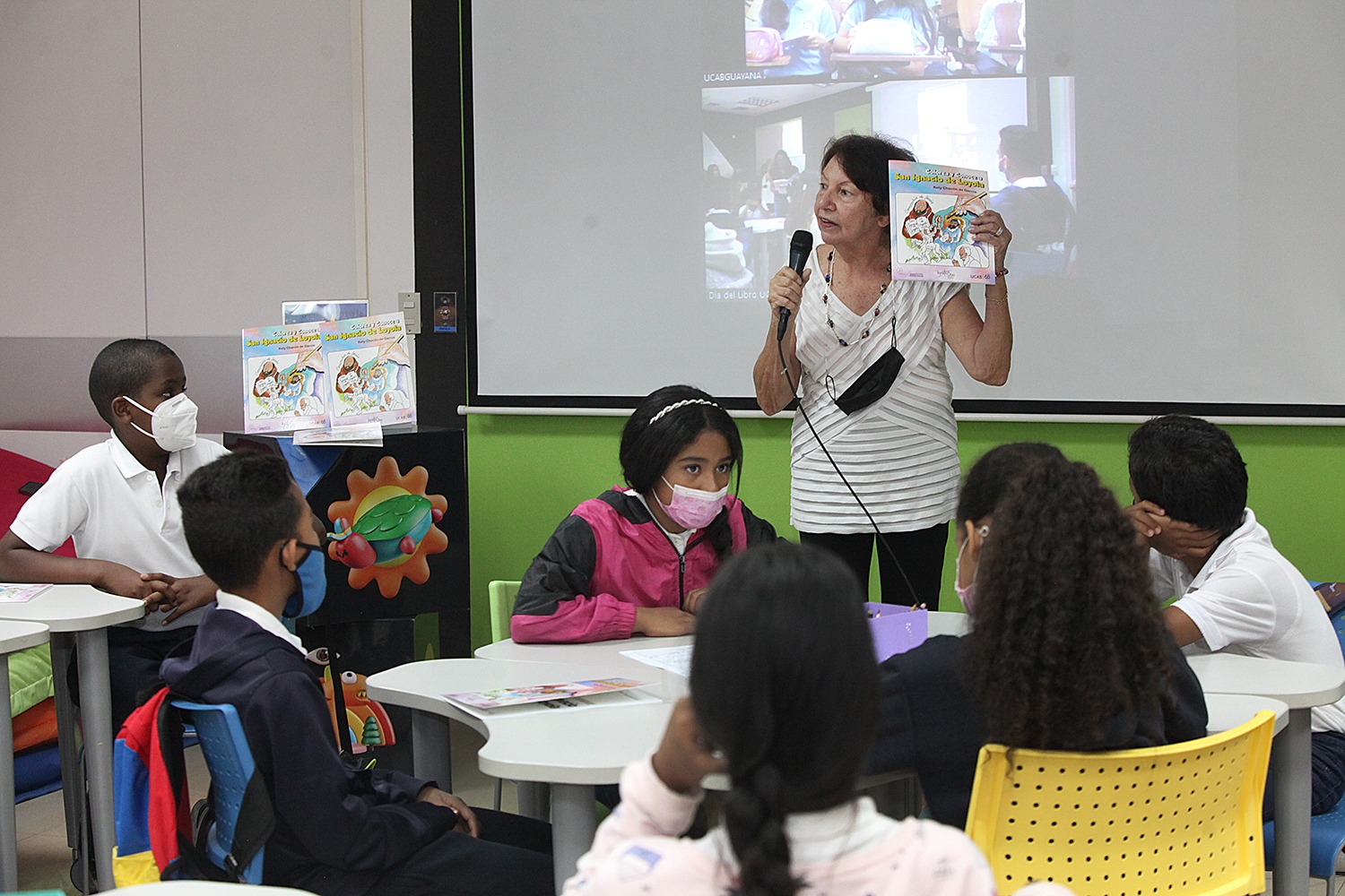Las actividades comenzaron a las 10:00 am con la presentación del libro infantil Colorea y conoce a San Ignacio de Loyola, en donde niños de las comunidades aledañas al campus Montalbán, junto a un grupo de estudiantes de Ciudad Guayana, participaron en un taller, junto a la autora del libro, la ilustradora Kety Chacón de García, quien los guió en el proceso del coloreado de este texto, inspirado en la historia del fundador de la Compañía de Jesús.