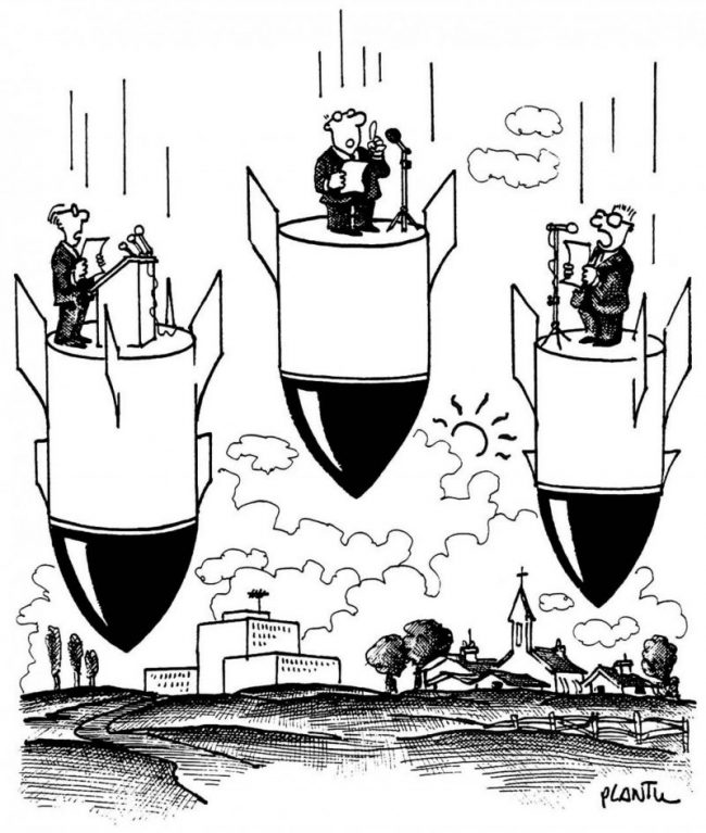 Para Jean Plantureux, el trabajo del ilustrador para prensa tiene dos luces: por un lado lo compara con un juego de palabras, al estilo Scrabble, “donde se pueden construir nuevos significados con la unión de dos o más elementos independientes”.