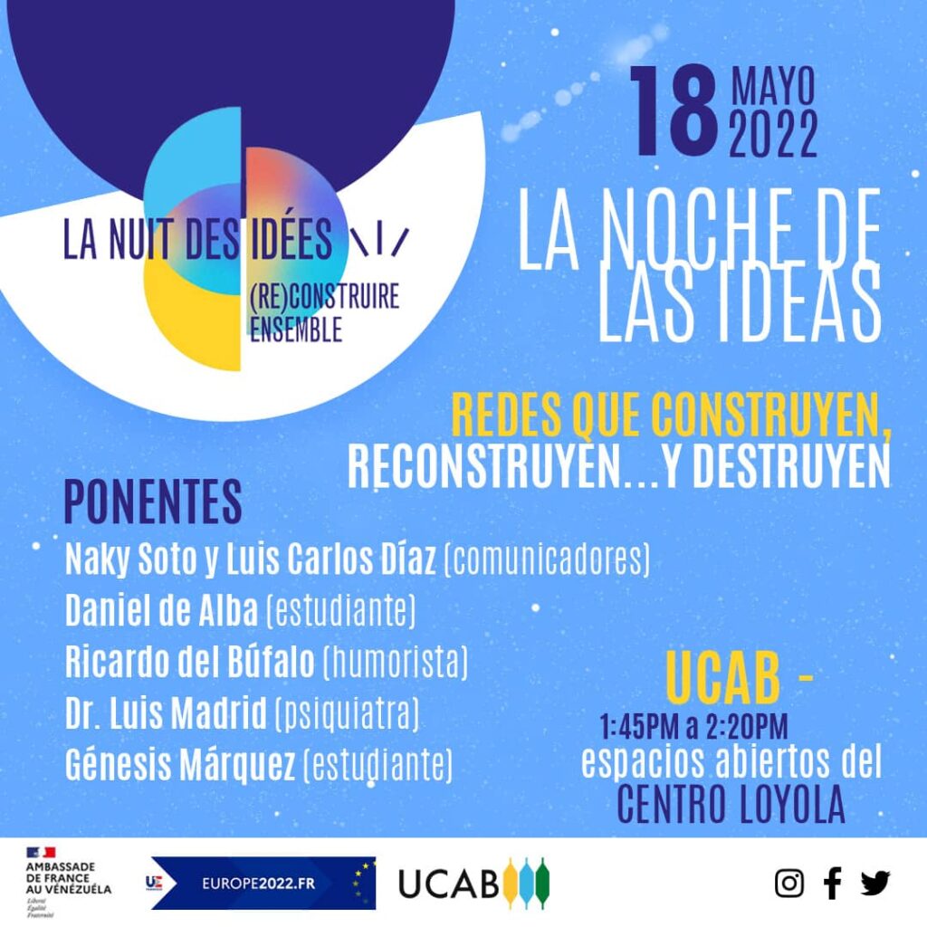 Según afirmó el embajador de Francia, Romain Nadal, “el objetivo de La Noche de Ideas es celebrar la corriente de ideas entre países, culturas, temas y generaciones. Cada año, brinda la oportunidad de presentar los últimos avances en conocimiento y artes, escuchar a los que contribuyen a aportar más ideas a su campo y participar en la discusión sobre los principales problemas de nuestro tiempo. La Noche de las Ideas nos permite promover una cierta visión del mundo, fundada en el diálogo, en el libre pensamiento, en el deseo de unir las buenas voluntades para construir nuestro futuro común, estrechando aún más los vínculos culturales entre Francia y Venezuela”.