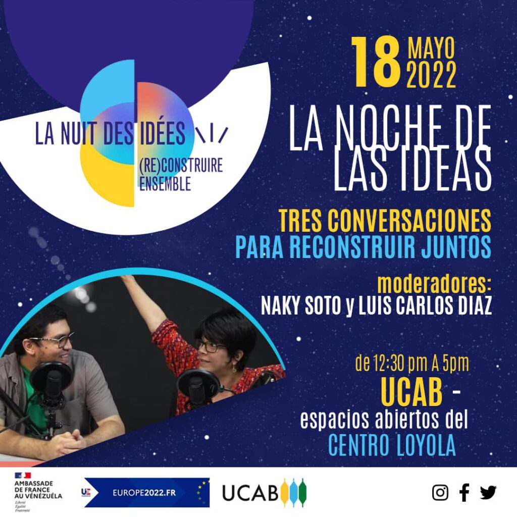 Seguidamente, a la 1:00 pm, el periodista Luis Carlos Díaz y la infociudadana Naky Soto -moderadores del encuentro- ofrecerán una reflexión introductoria a partir de la pregunta “¿Cuál es el proyecto modernizador con el que Venezuela va a entrar en el siglo XXI?. La disertación servirá de homenaje In Memoriam a la socióloga y antropóloga venezolana Paula Vásquez Lezama (fallecida en 2021), quien formuló esta interrogante en la anterior edición de “La Noche de las Ideas”, celebrada en la UNIMET. Durante más de 20 años, Vásquez desarrolló carrera como investigadora en institutos como el Centro Nacional para la Investigación Científica de Francia, el Centro de Estudios Sociológicos y Políticos Raymond Aron de París y el Centro de Investigaciones Políticas y Sociales de París; buena parte de su trabajo lo dedicó a estudiar la realidad social, política y económica venezolana.