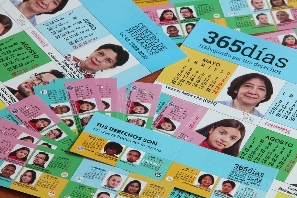 Los 20 mil calendarios de pared y 20 mil de bolsillo, producidos por el CDH UCAB como parte de la campaña “365 días trabajando por tus derechos”, contienen los datos del Centro y de 12 de sus organizaciones aliadas: Provea, Funcamama, Cepaz, ODH-ULA, Civilis, Espacio Público, CDH-Unimet, Acción Solidaria, Codhez, Codehciu, Convite y Defiende Venezuela.