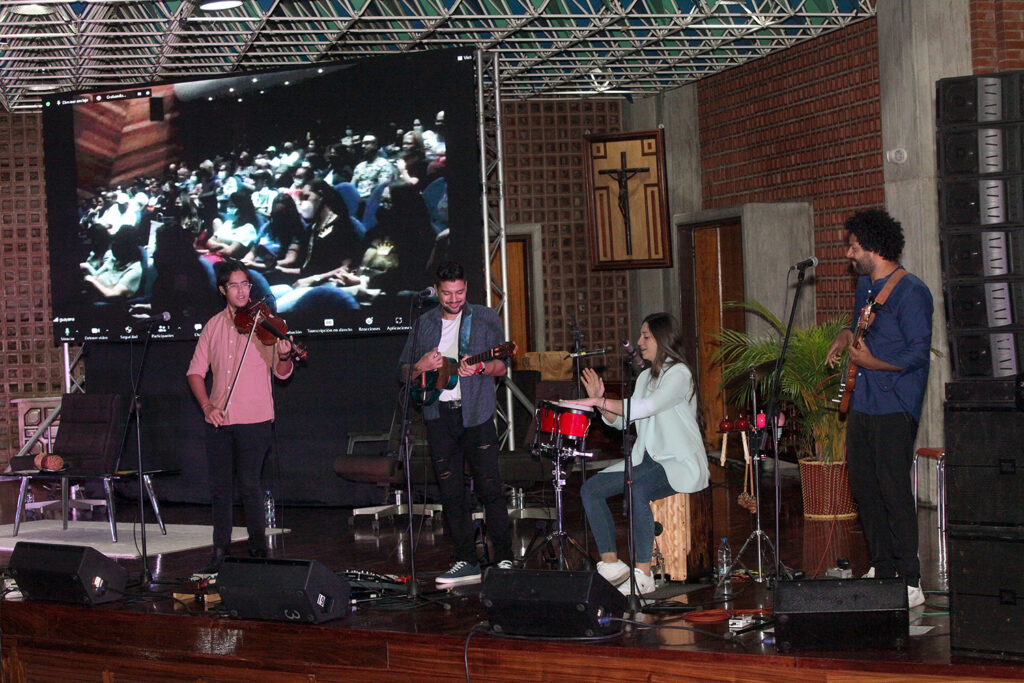 Una fluida conversación sobre los proyectos y avances de la universidad se estableció en simultáneo, entre Caracas y Guayana, con María Isabel Suárez, del Centro de Estudios en Línea; José Francisco Juárez, decano de la Facultad de Humanidades y Educación; Joao de Gouveia, director de la Escuela de Ingeniería Industrial; Jesús Robles, director de Transferencia e Incidencia; Guillermo Yáber, director del Centro de Investigación, Innovación y Desarrollo Académico; la profesora Vanessa Farina, directora de la recién inaugurada Academia de Moda; y el padre César Muziotti SJ, director de Identidad y Misión.