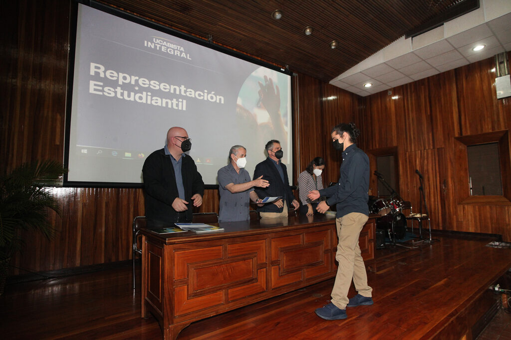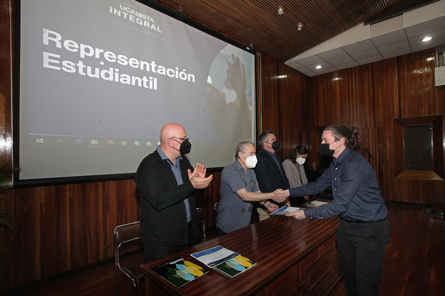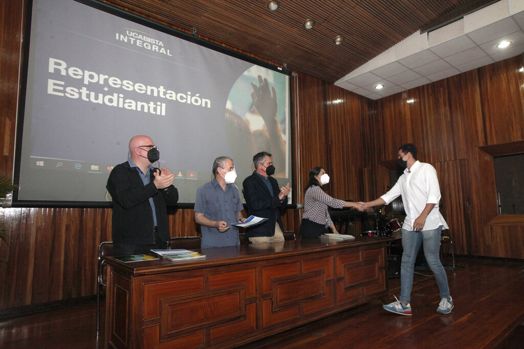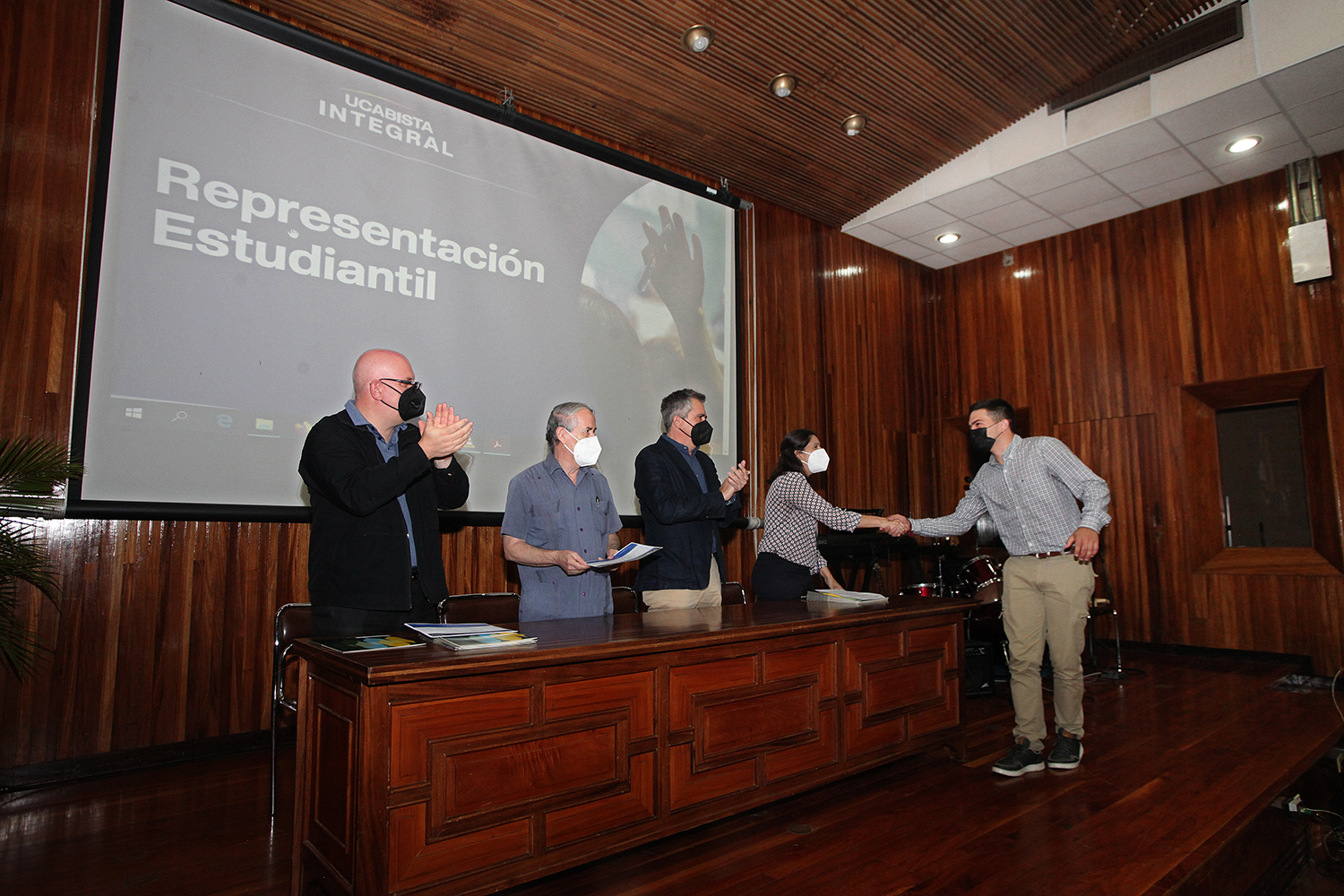 La undécima premiación estuvo presidida por el vicerrector académico, Gustavo Peña; el director general de Desarrollo Estudiantil, Leonardo Marius, y el vicerrector de Identidad, Desarrollo Estudiantil y Extensión Social, Néstor Luis Luengo. De forma telemática, les acompañó la directora del Secretariado de Internacionalización, Lizbeth Sánchez. La agrupación Ensamble UCAB interpretó un par de temas musicales para animar el acto.