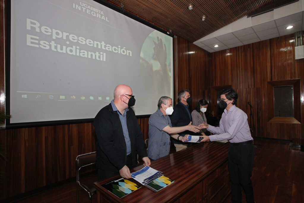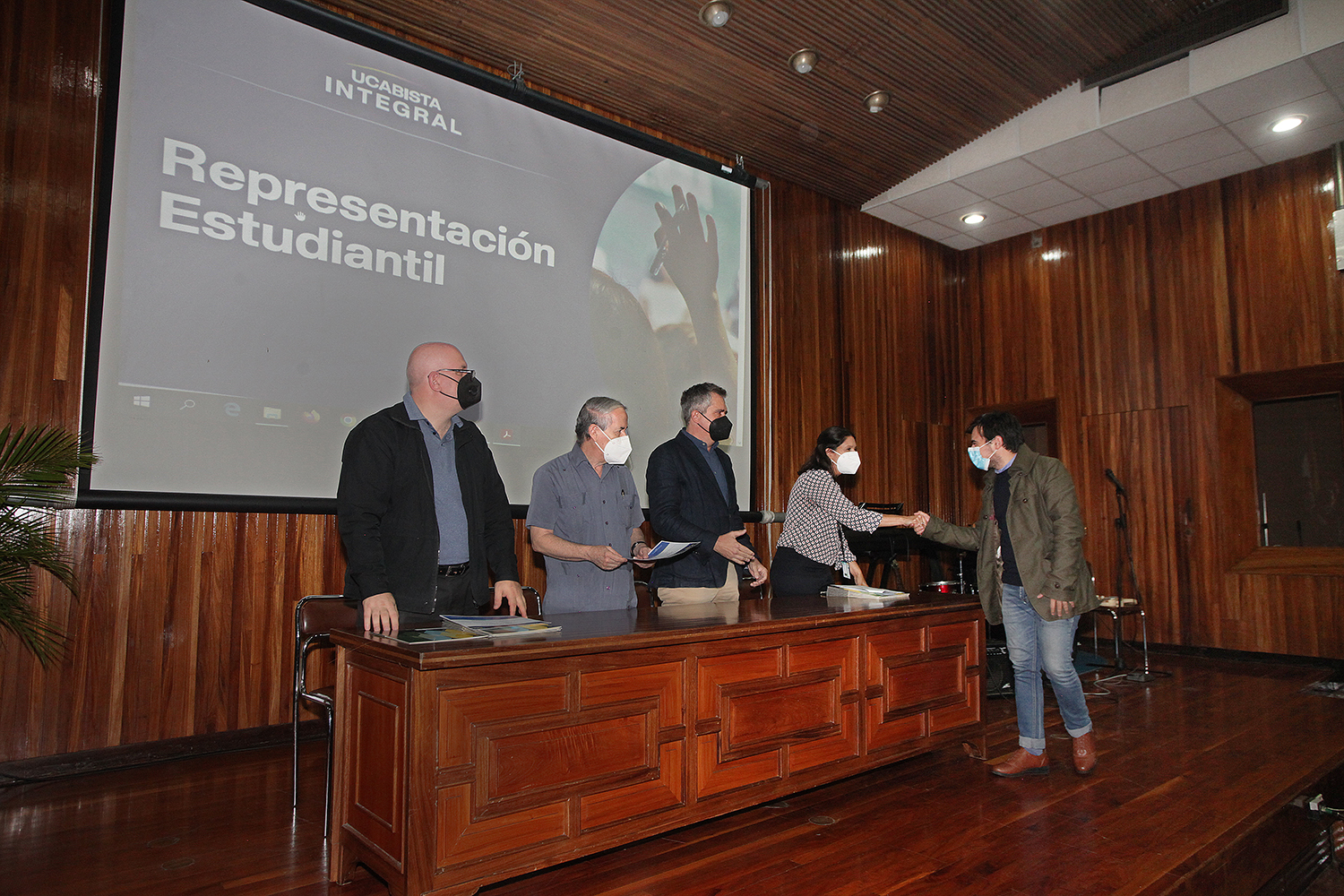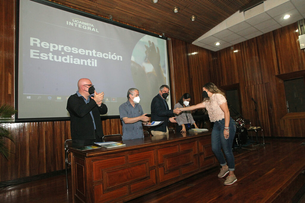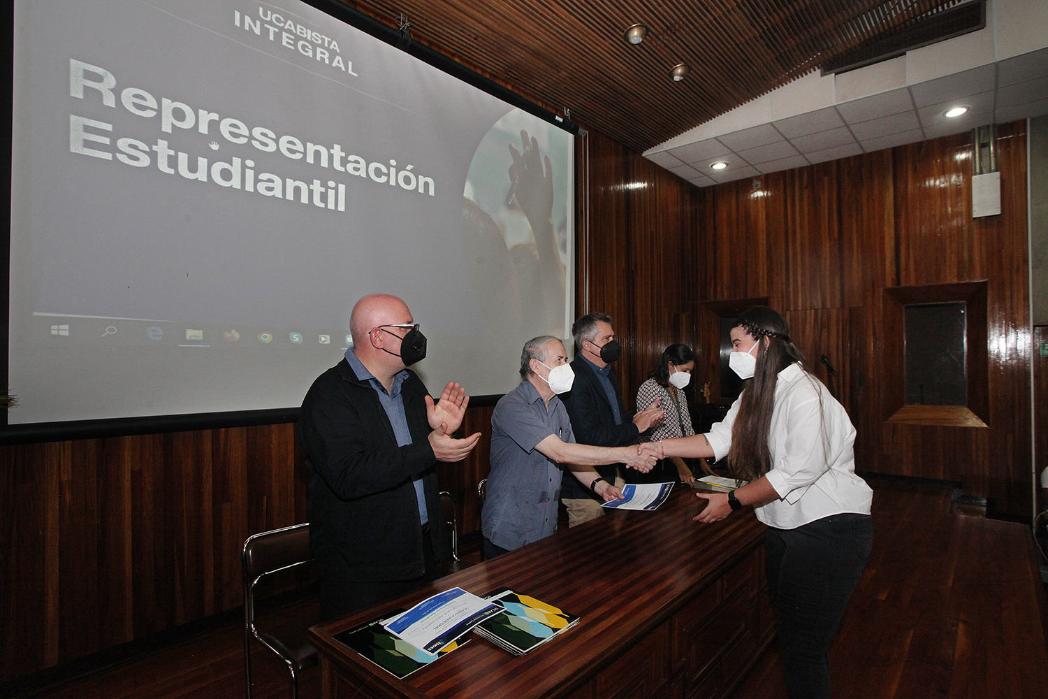 La undécima premiación estuvo presidida por el vicerrector académico, Gustavo Peña; el director general de Desarrollo Estudiantil, Leonardo Marius, y el vicerrector de Identidad, Desarrollo Estudiantil y Extensión Social, Néstor Luis Luengo. De forma telemática, les acompañó la directora del Secretariado de Internacionalización, Lizbeth Sánchez. La agrupación Ensamble UCAB interpretó un par de temas musicales para animar el acto.