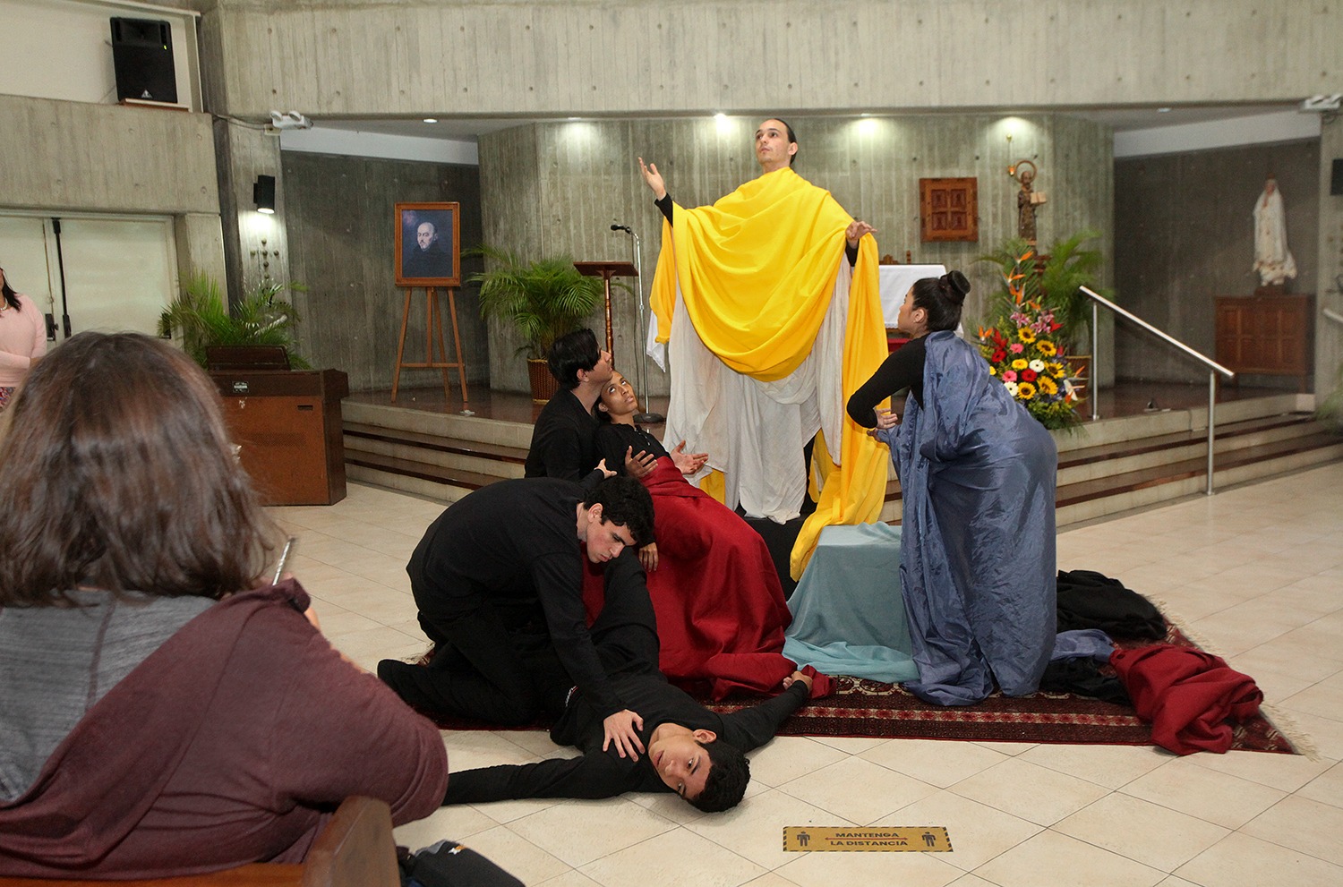 La actividad comenzó con una actuación breve a cargo del grupo Teatro UCAB. Bajo la conducción de Duilia Díaz, directora de la agrupación, los actores recrearon algunas escenas de la vida de Ignacio de Loyola para el público asistente.