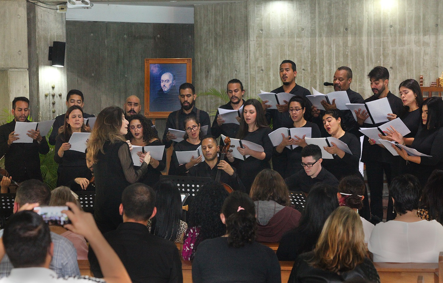 Inmediatamente después, músicos y cantantes de la Camerata de Caracas se instalaron en la capilla para ofrecer un concierto titulado «La música en tiempos de Ignacio». Bajo la batuta de Isabel Palacios, directora de la Camerata, los artistas presentaron un recorrido histórico-musical a través de piezas renacentistas y barrocas. De hecho, entre cada composición Palacios explicaba el origen de la pieza y su conexión con los jesuitas en América Latina.