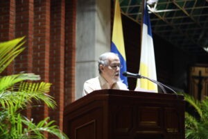 El vicerrector académico Gustavo Peña ofreció una breve intervención donde rememoró su acompañamiento y servicio a la Escuela de Psicología desde hace casi 50 años. «Por nuestros logros hoy estamos felices. Nos sentimos realizados y, en medio de la situación difícil que parece caracterizar el entorno general, estamos dispuestos a seguir luchando por una educación de calidad», explicó.